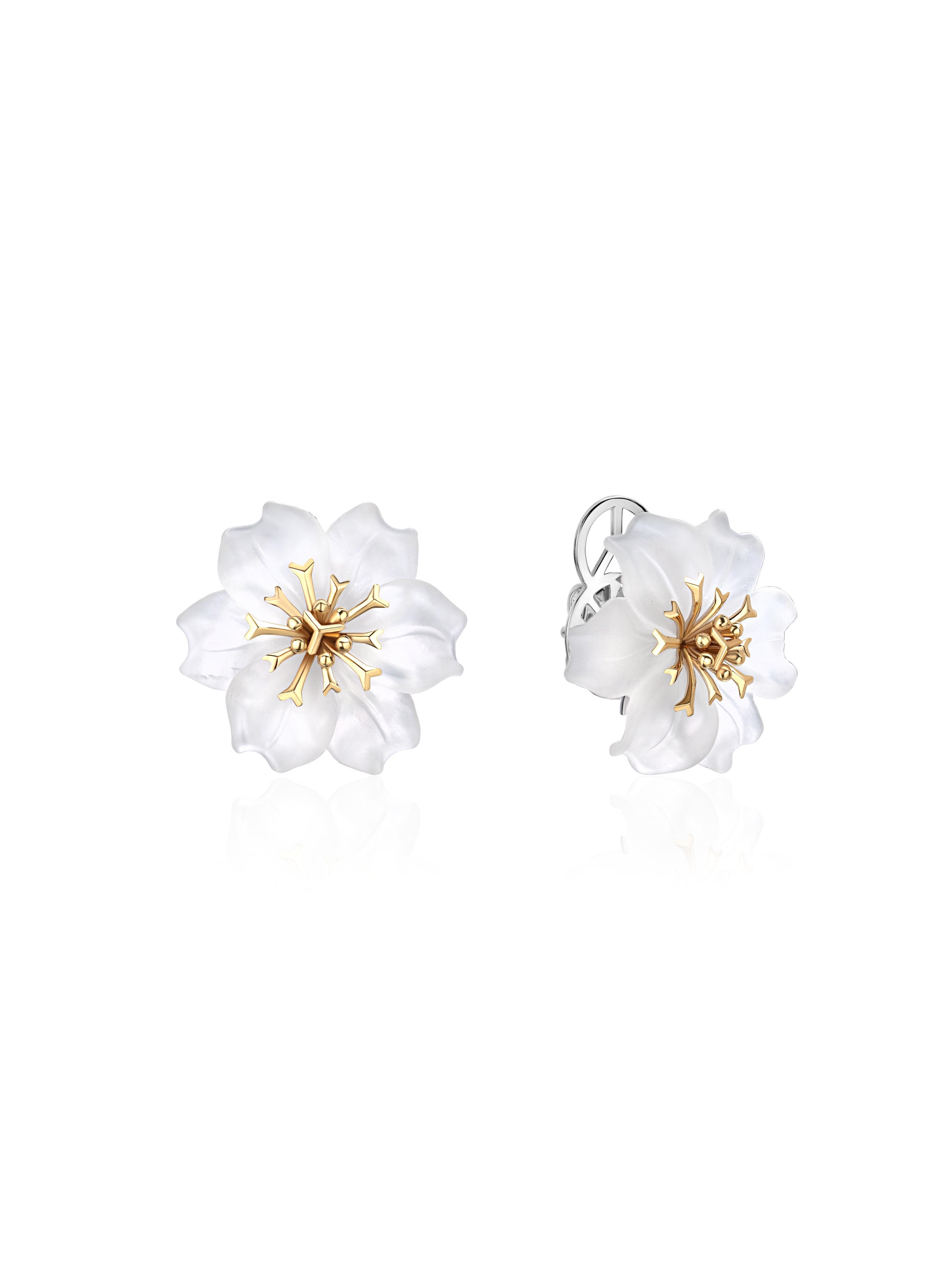 Earrings with carved quartz in the shape of flowers 16.33 ct