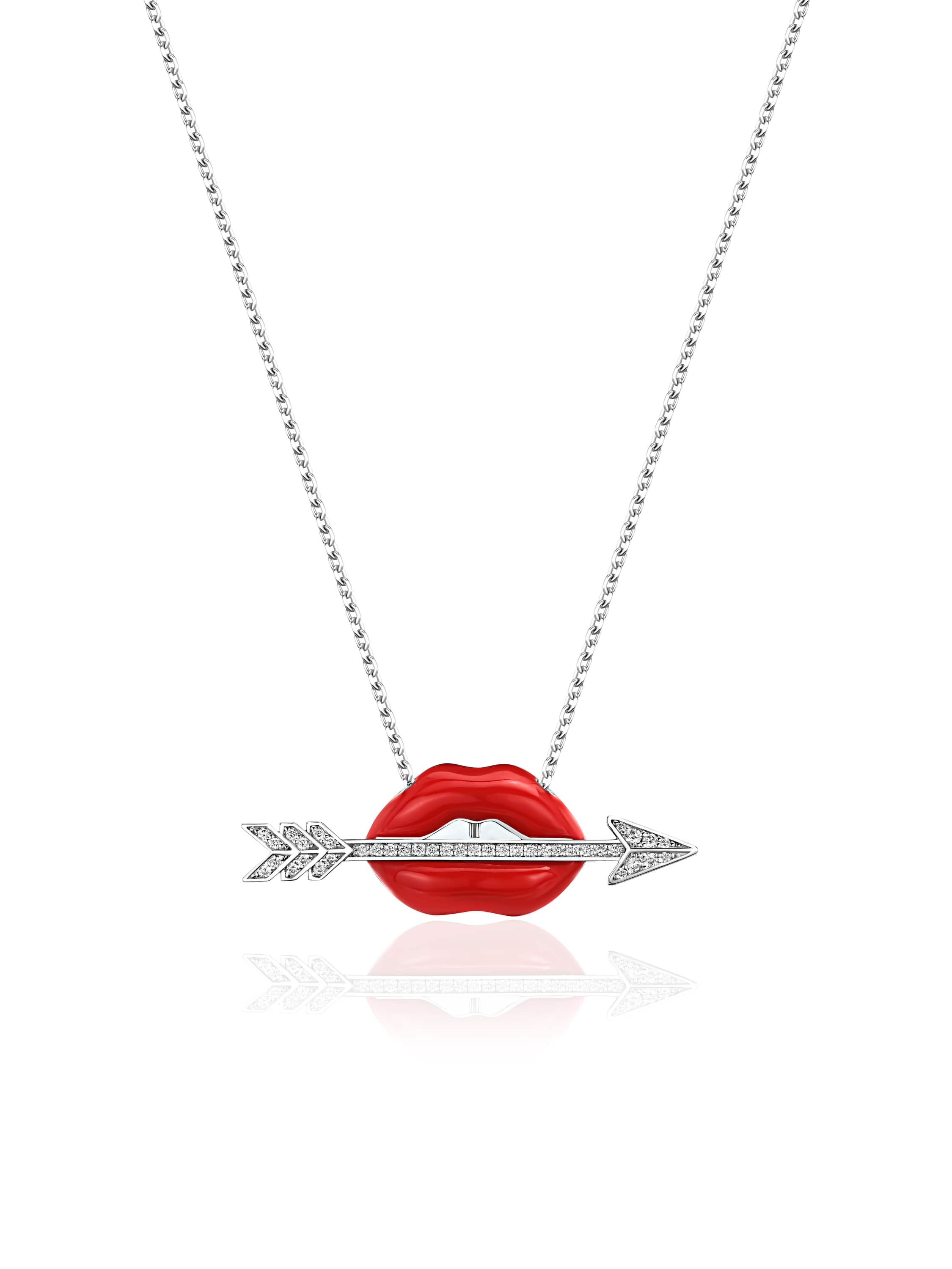 Lip-shaped necklace with pendant with Red Color enamel and diamonds