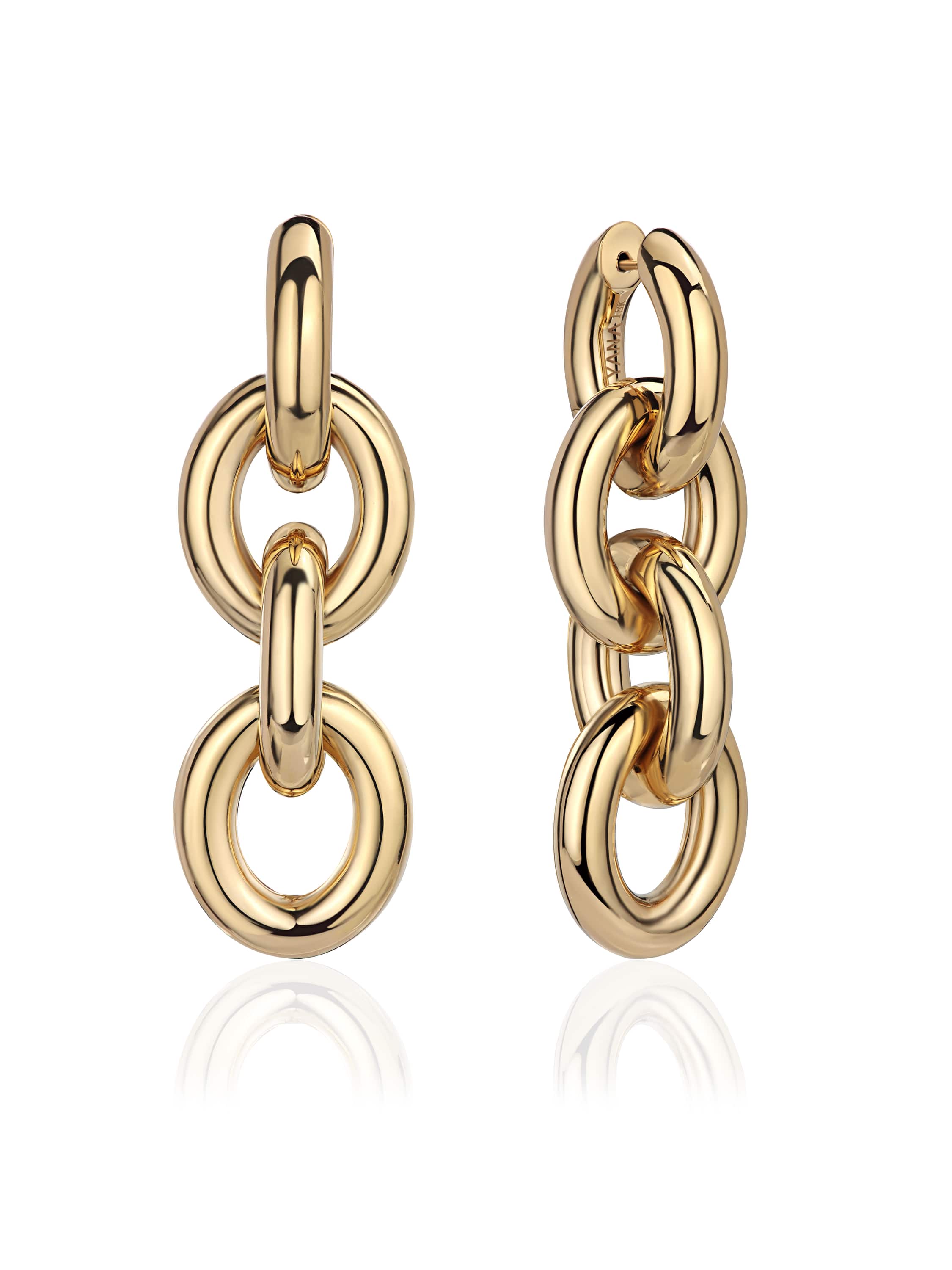 Chain-style hoop earrings crafted in 18K yellow gold. Weight: 59.02 g. Item length: 7 cm.