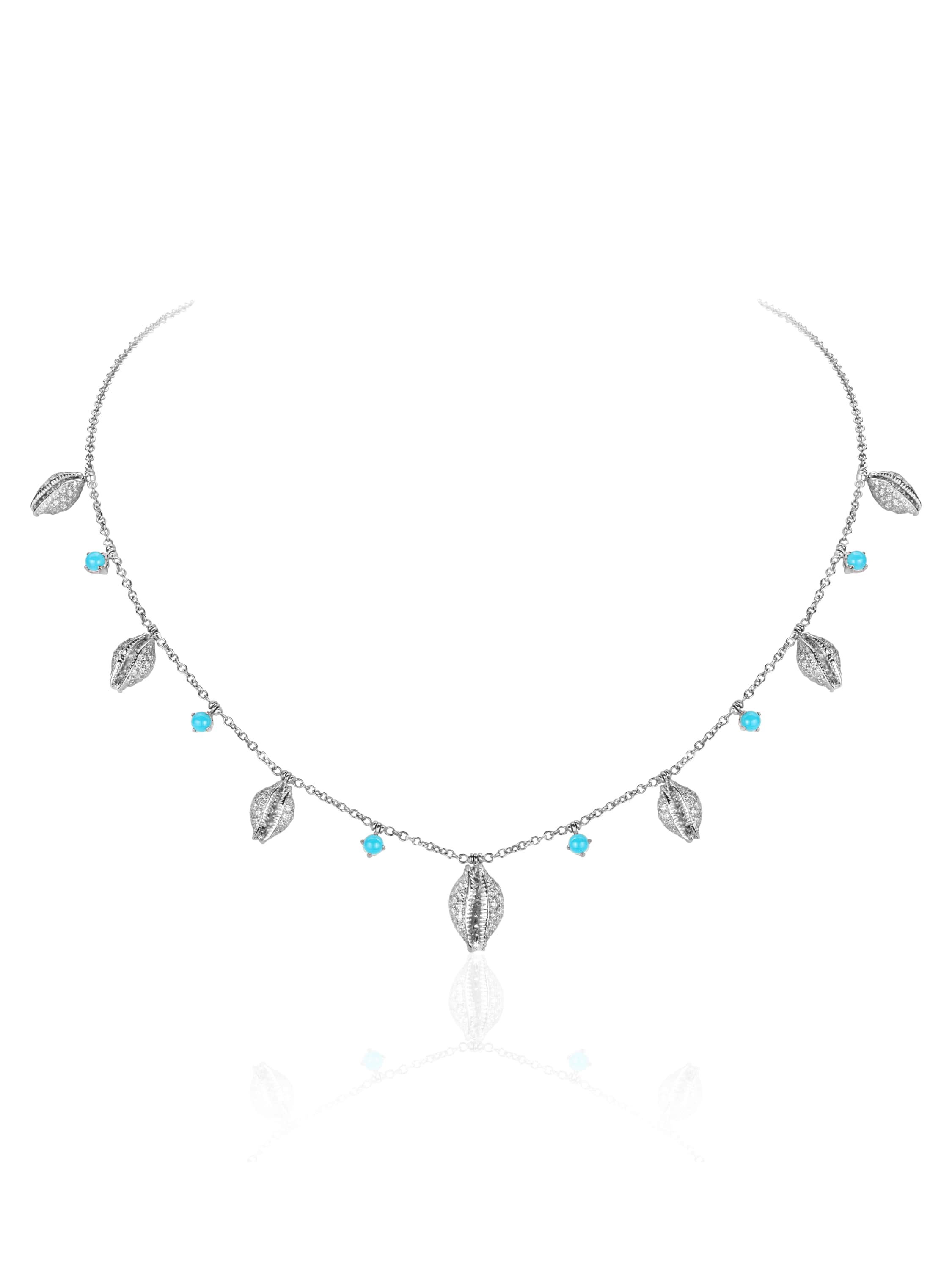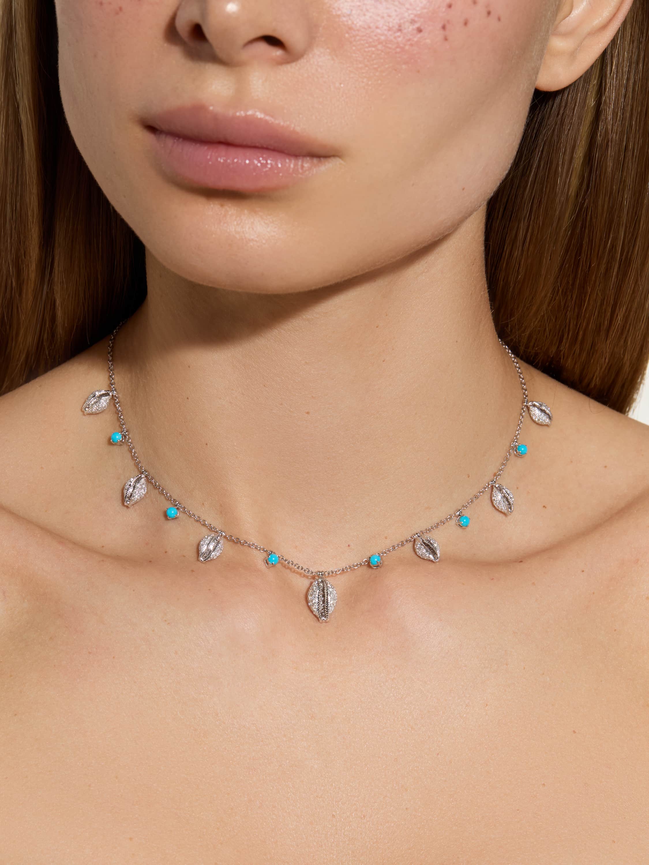 White gold necklace with turquoise weighing 0.75 ct and 611 round diamonds 3.41 ct.