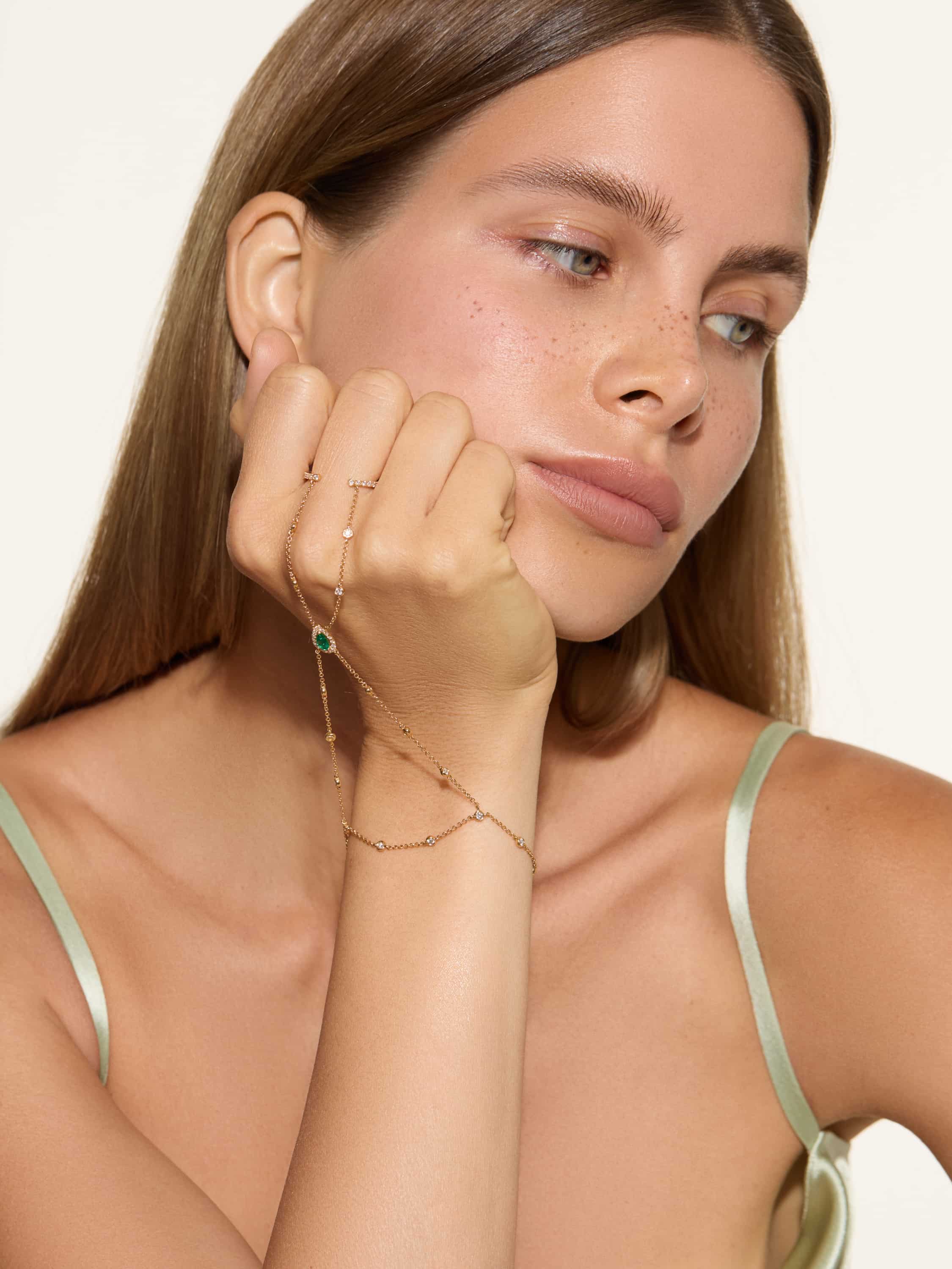 Slave bracelet in yellow gold with a pear-cut 0.32 ct emerald, 66 round diamonds totalling 1.17 ct and 12 round-cut diamonds totalling 0.04 ct.