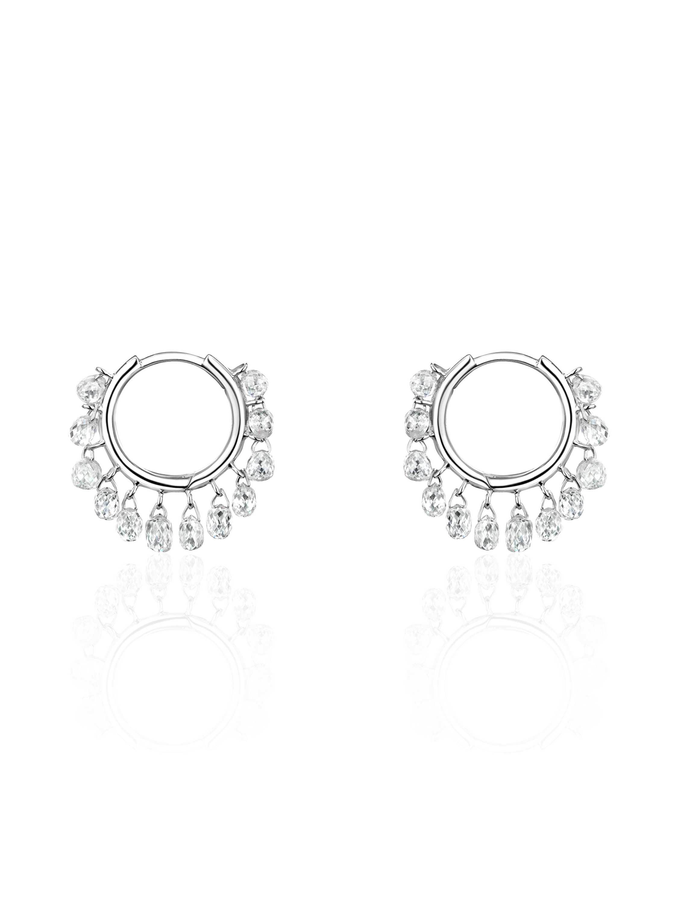 White gold hoop earrings with 24 briolette-cut diamonds with a total weight of 2.31 ct. Diameter: 1 cm.