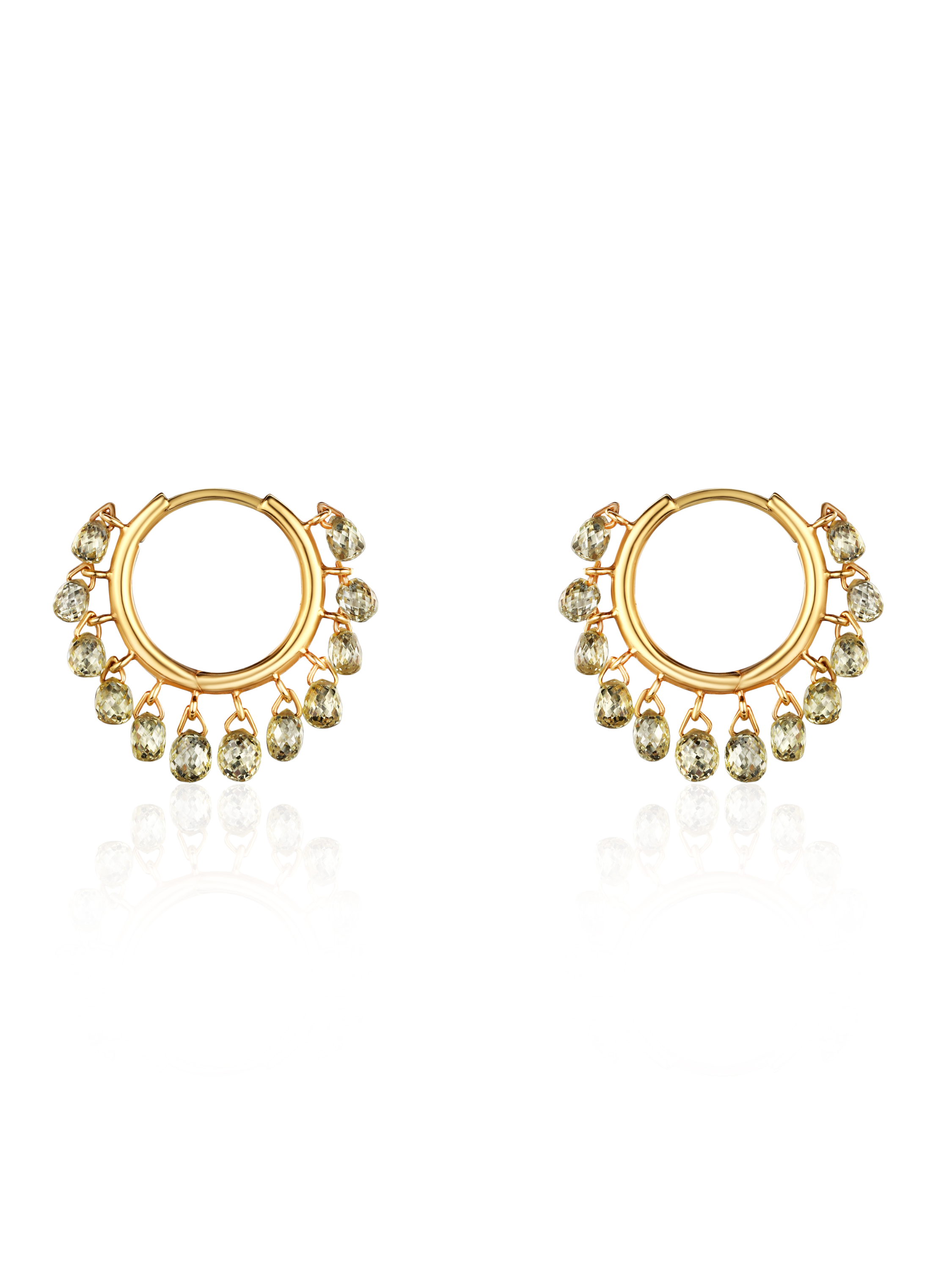 Small yellow gold hoops with briolette-cut diamonds