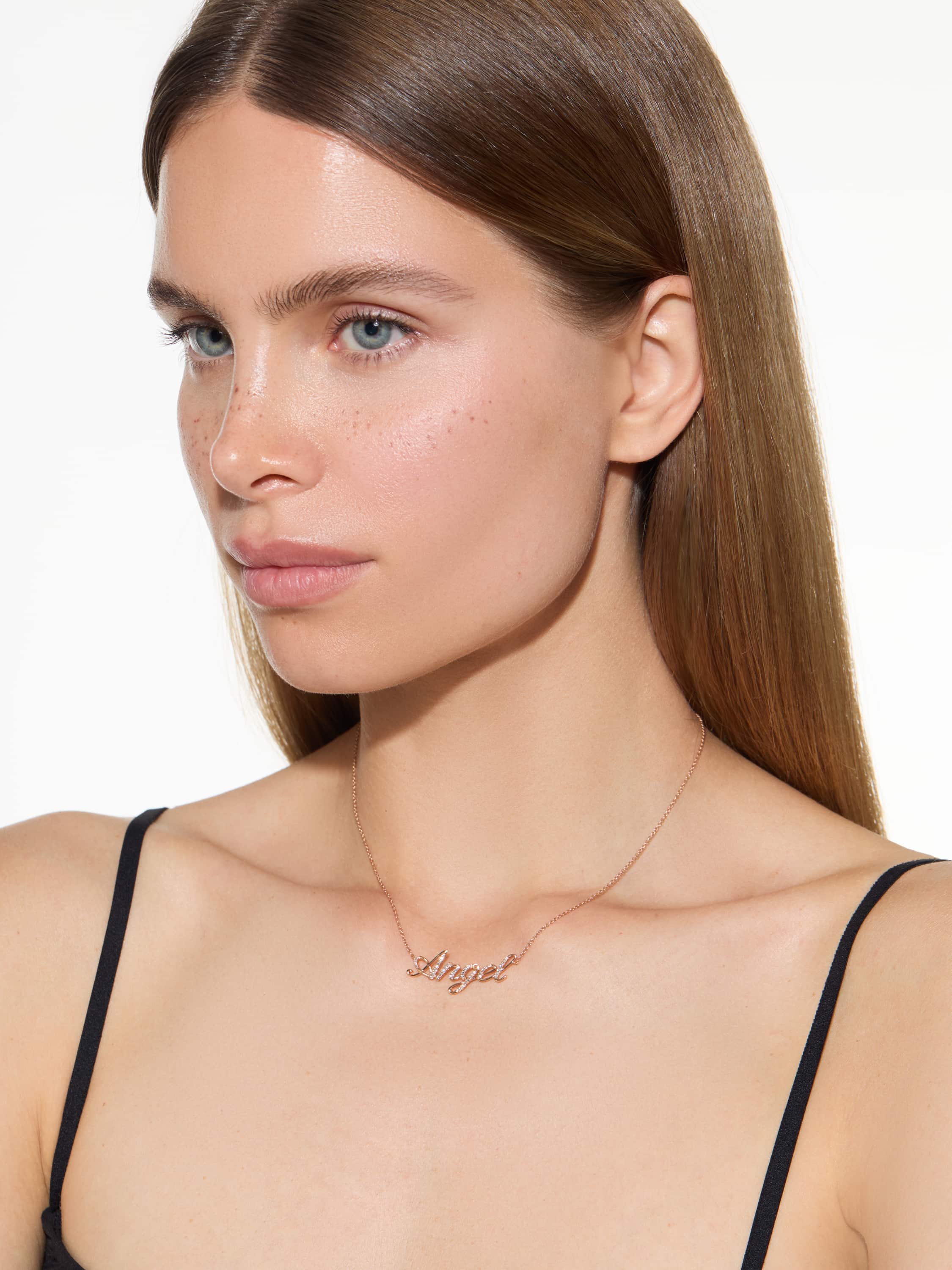 Necklace with “Angel” pendant in rose gold with 44 round-cut diamonds weighing 0.18 ct.