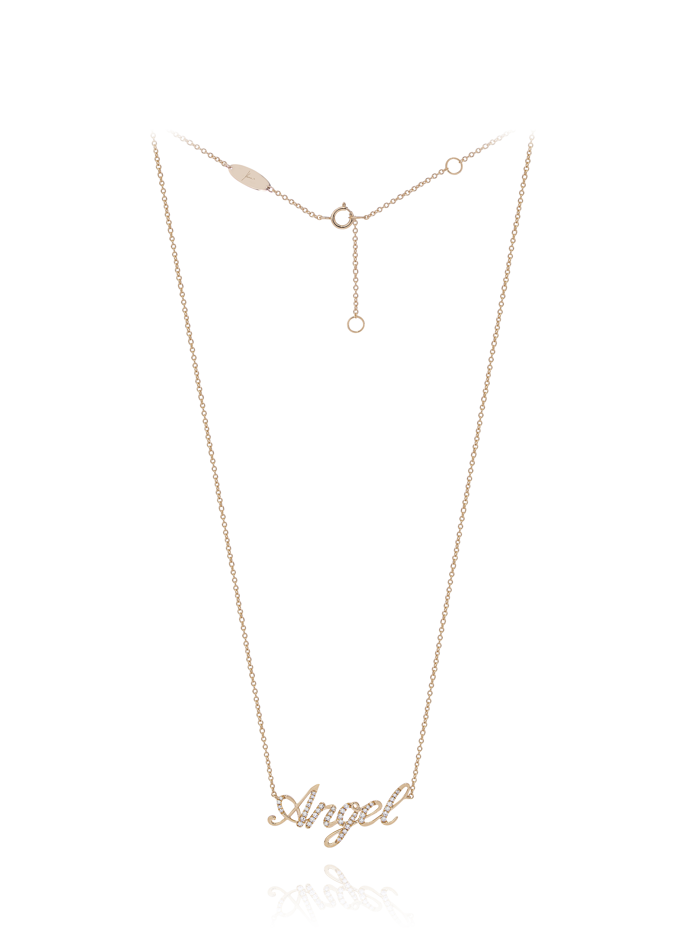 Necklace with an “Angel” pendant in yellow gold with 44 round brilliant‑cut diamonds with a total weight of 0.19 ct H/SI.