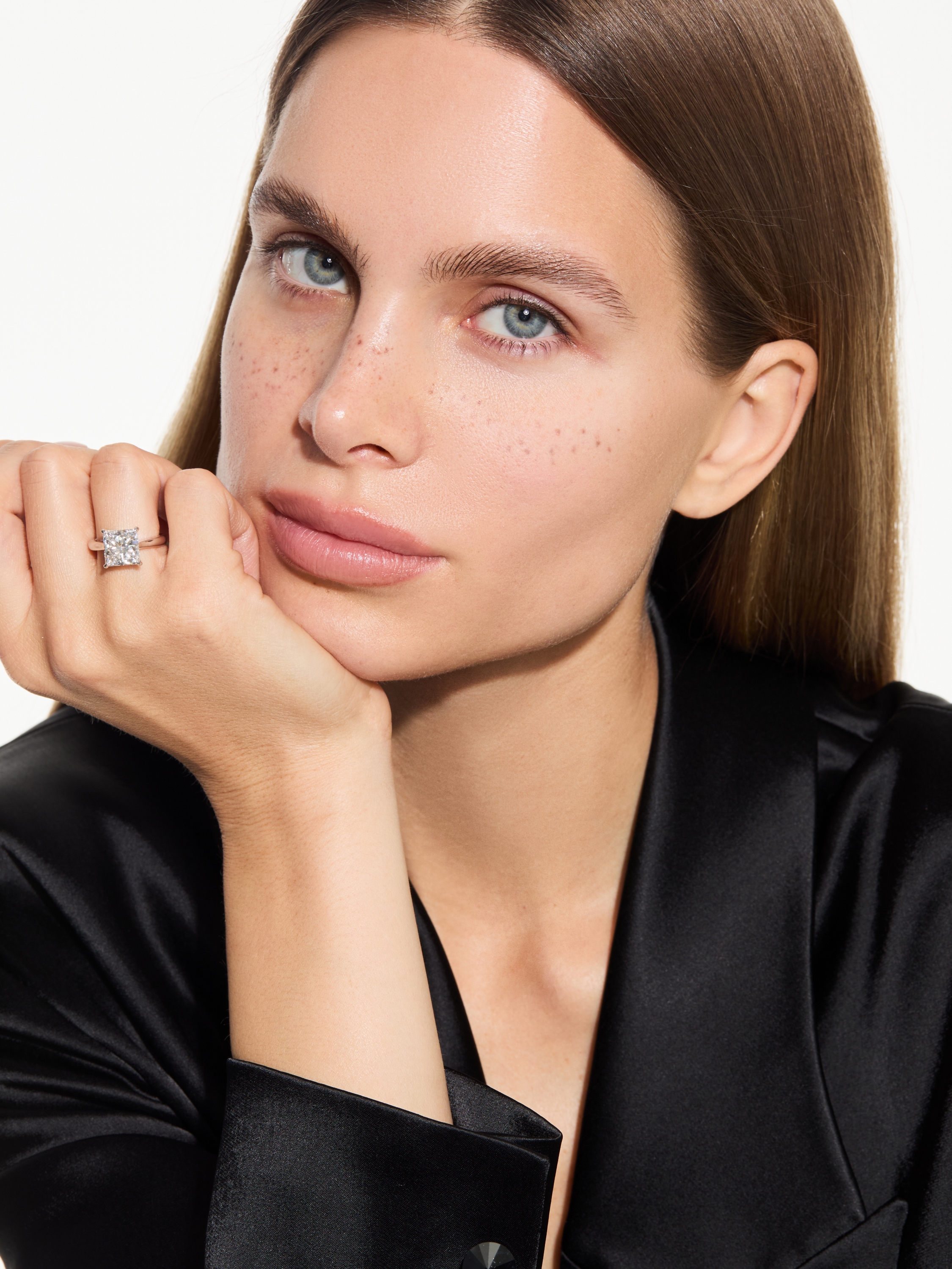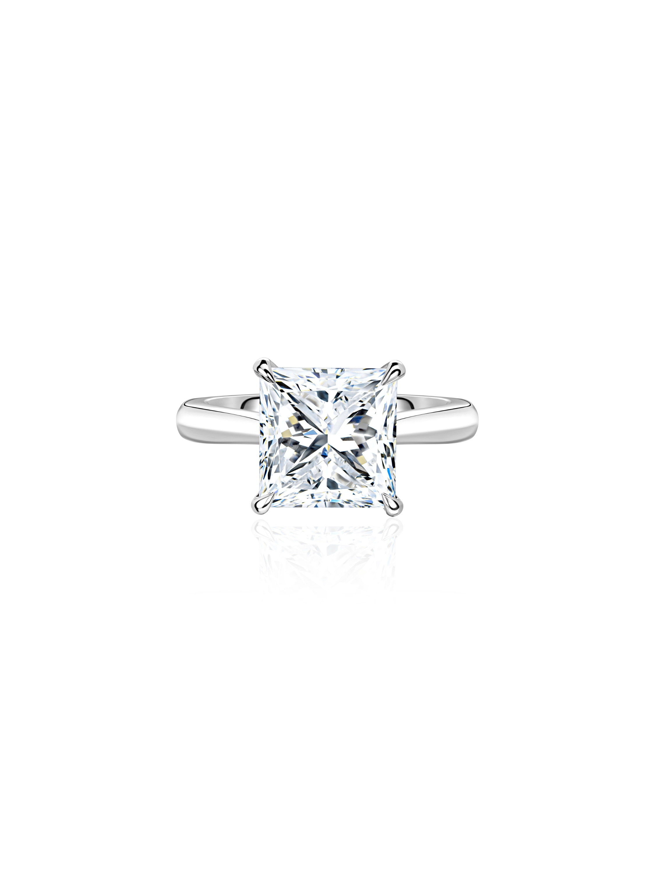 Ring with an LG diamond in a “princess” cut 5.05 ct E/VS1.
