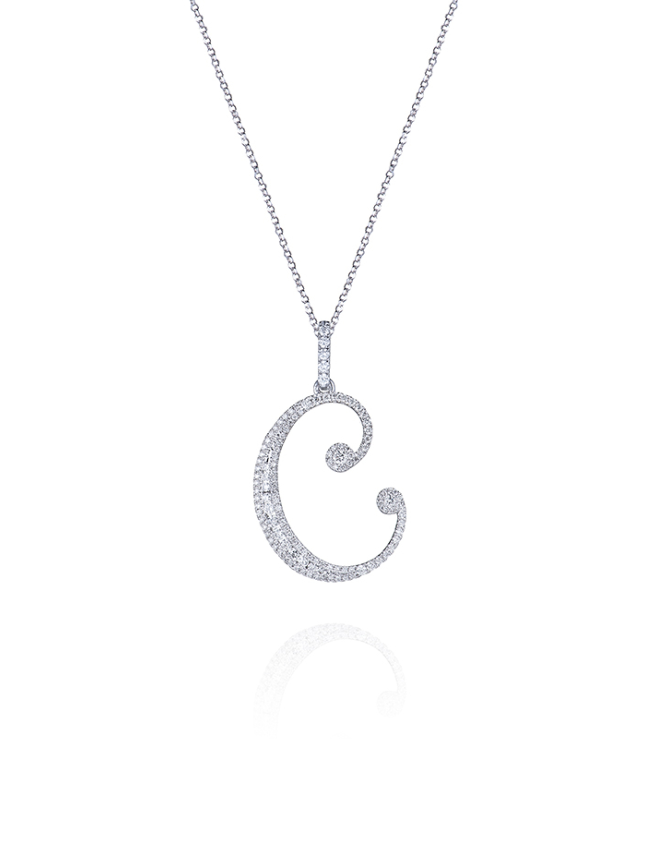 White gold necklace with a C-shaped pendant with 122 round-cut diamonds weighing 0.56 ct.