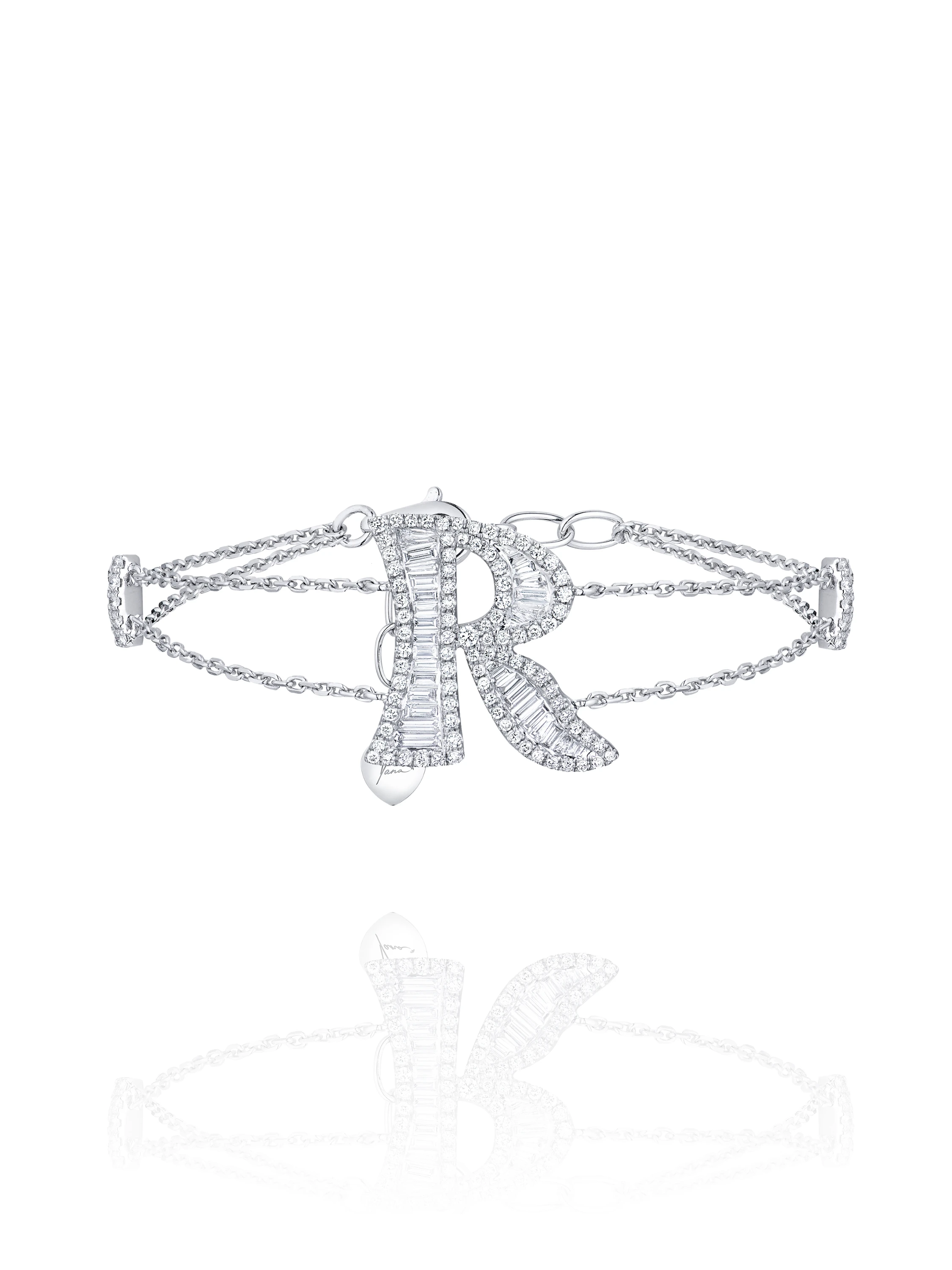 Round Diamond, Baguette Diamond & White Gold "R" Bracelet