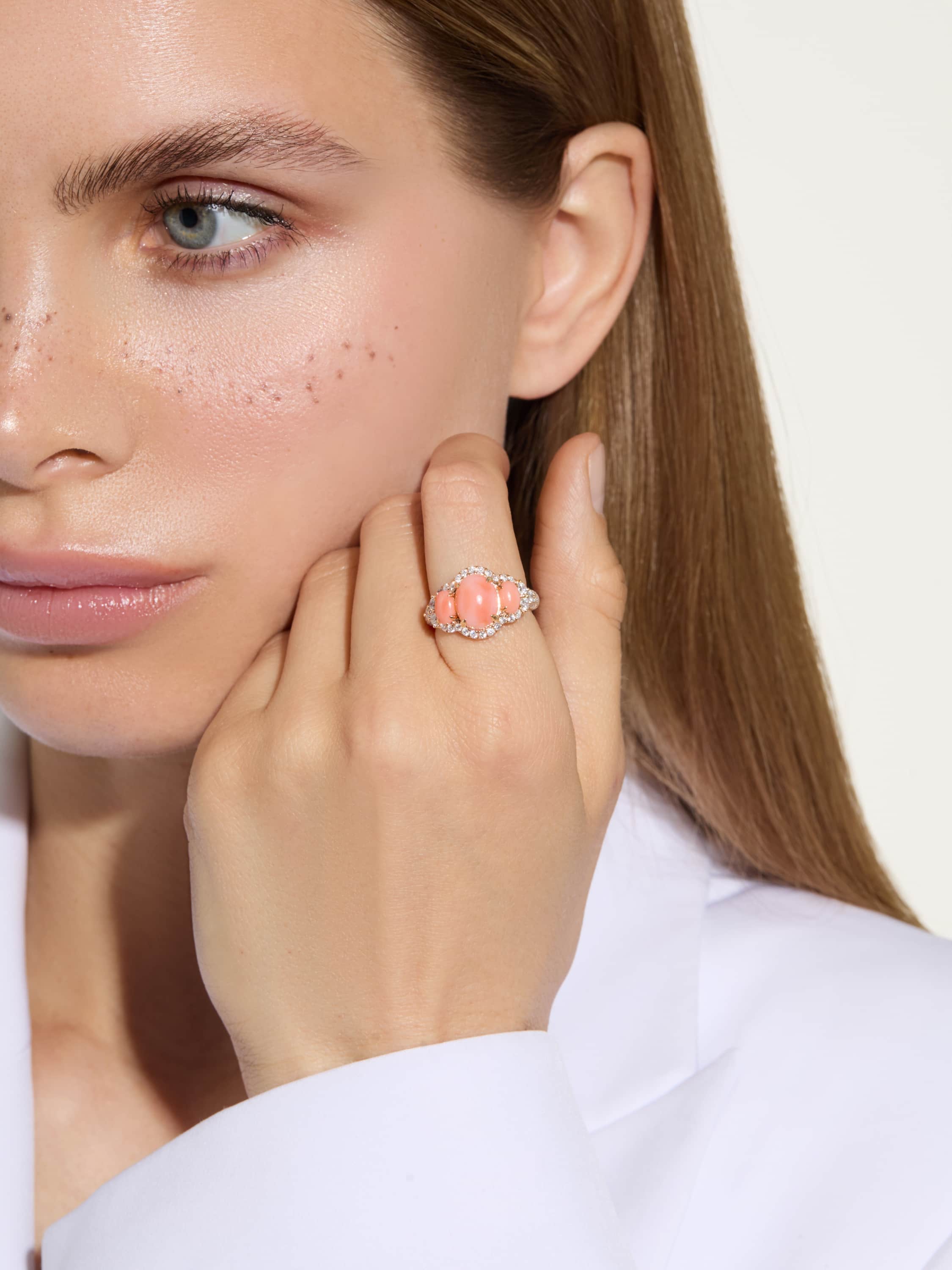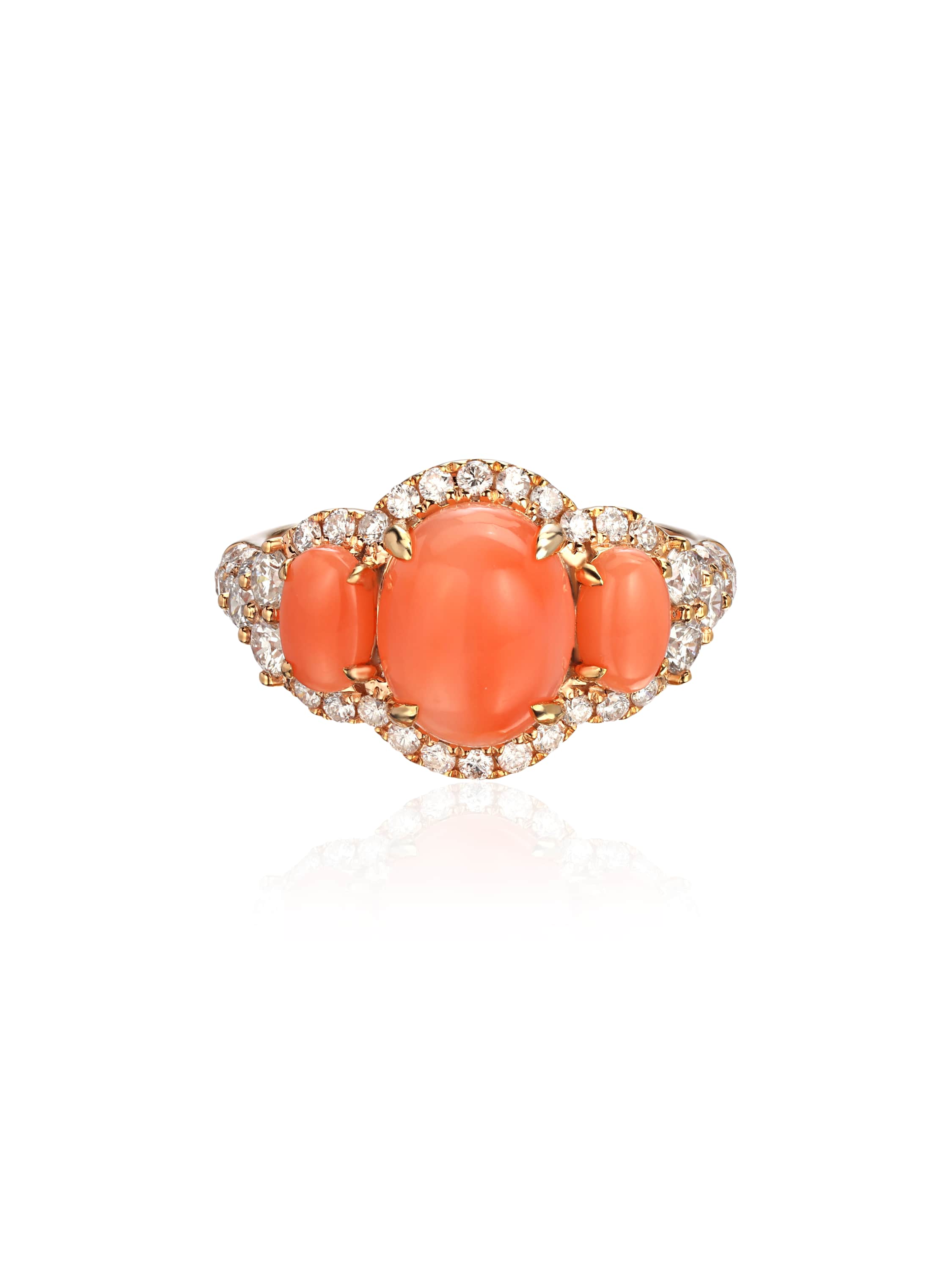 Rose gold ring with coral 3.68 g and diamonds weighing 0.98 ct.