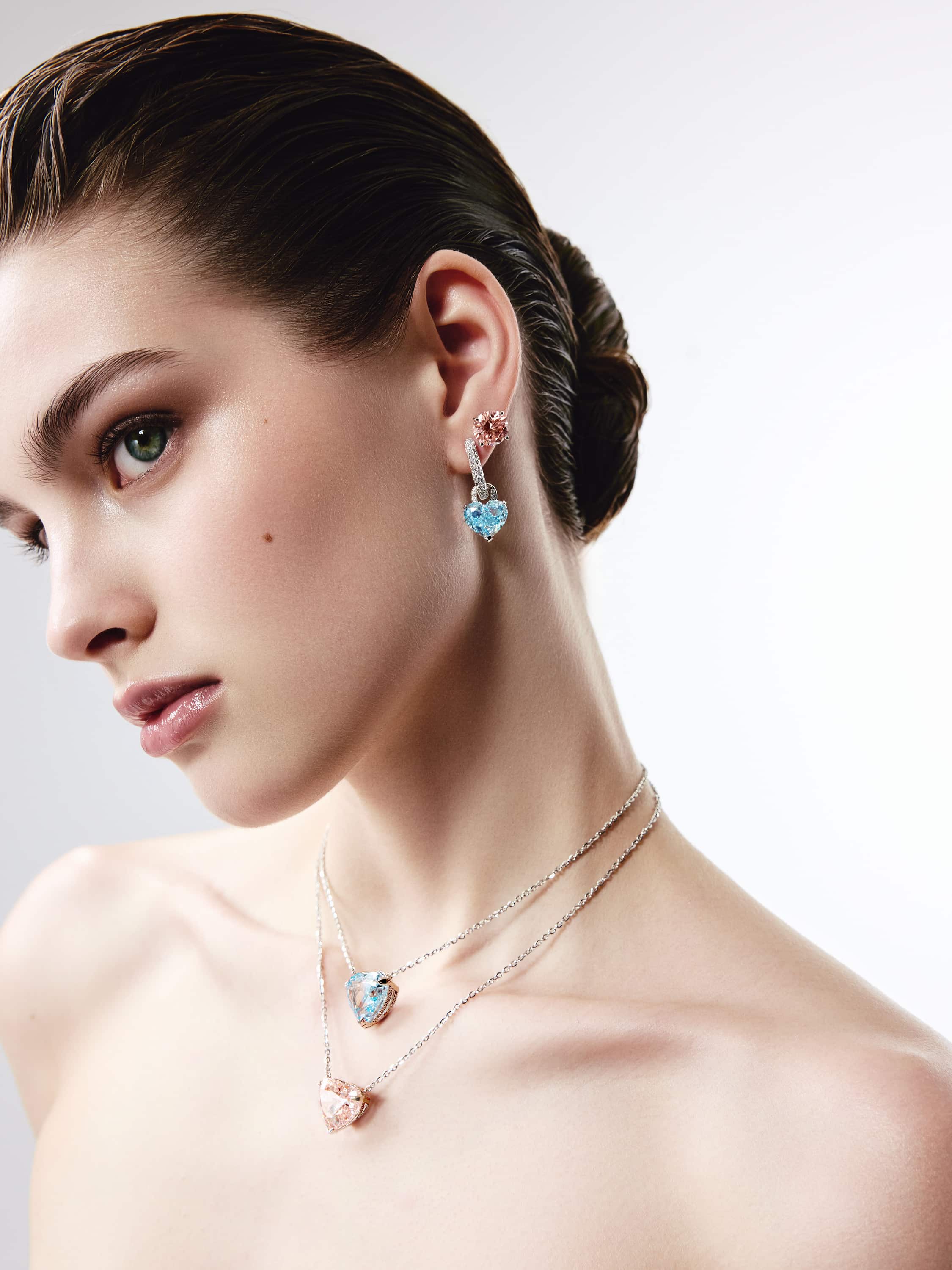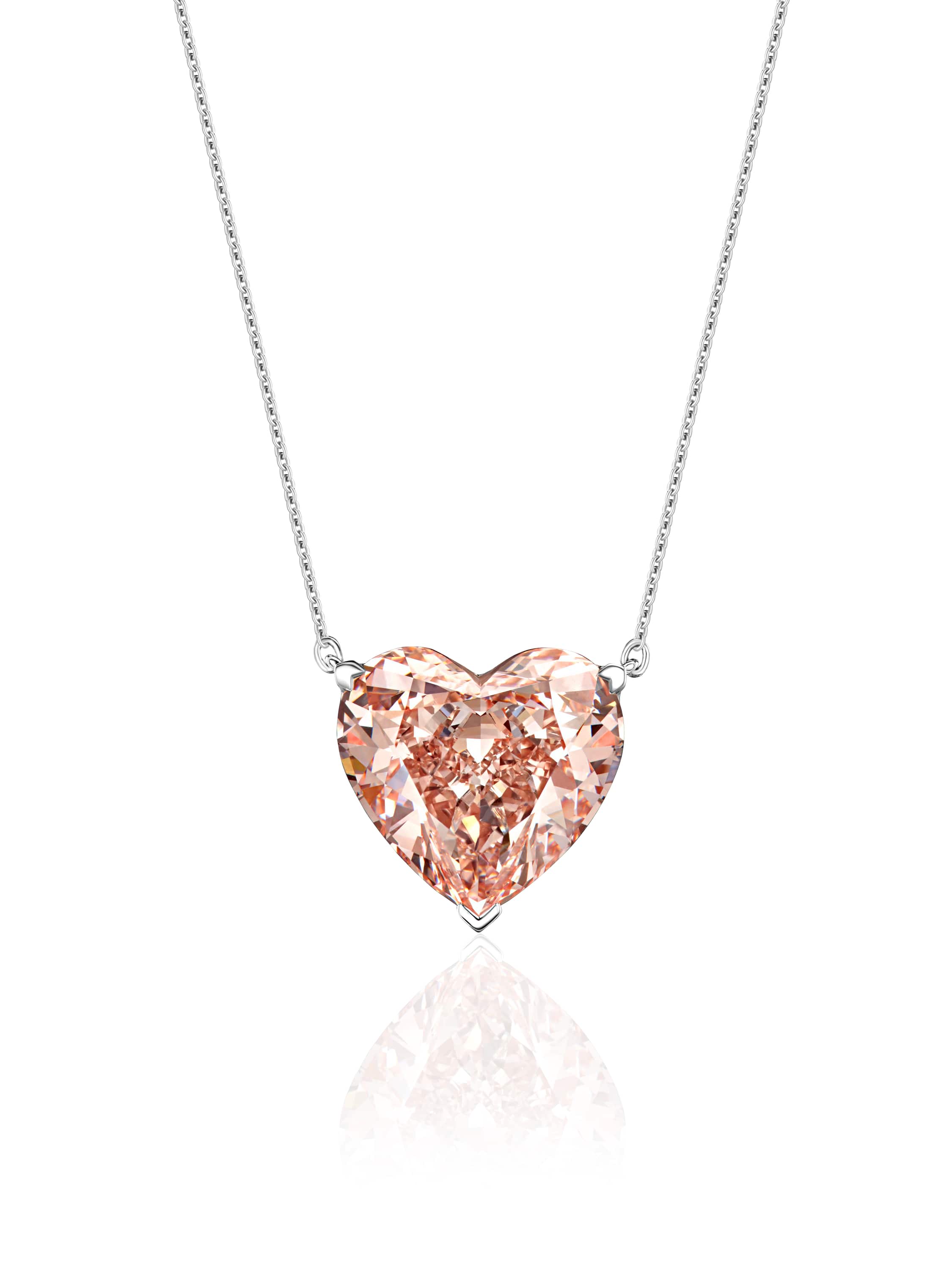 White gold necklace with pendant with pink LG diamond in heart cut 15.05 ct FIP/S and 112 round brilliant-cut diamonds 0.59 ct H/SI.