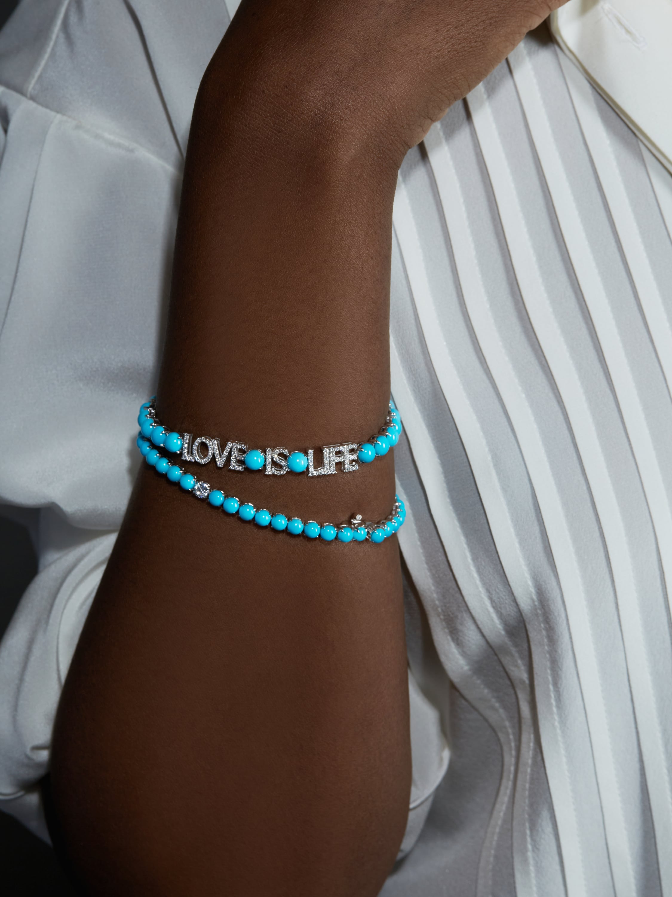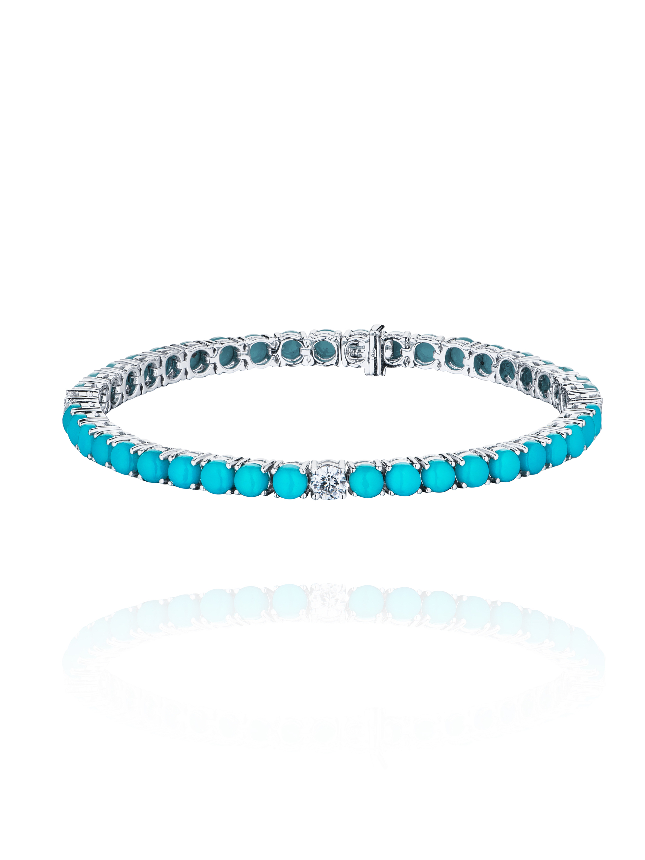 White gold bracelet, embellished with 40 turquoise cabochons with a total weight of 2.05 g and 4 round-cut diamonds with a total weight of 0.76 ct.