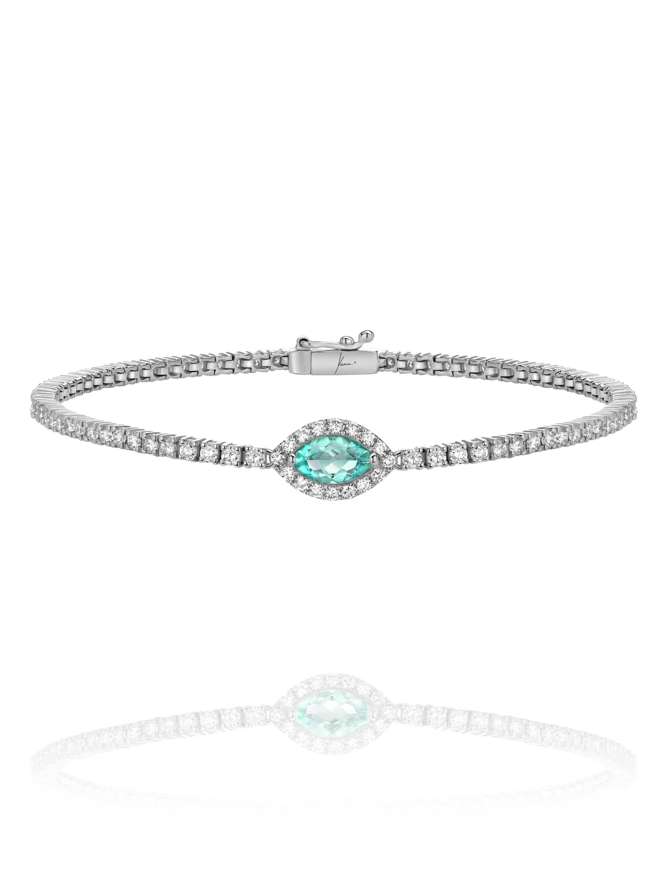 Tourmaline Paraiba, Round Diamond & White Gold Bracelet