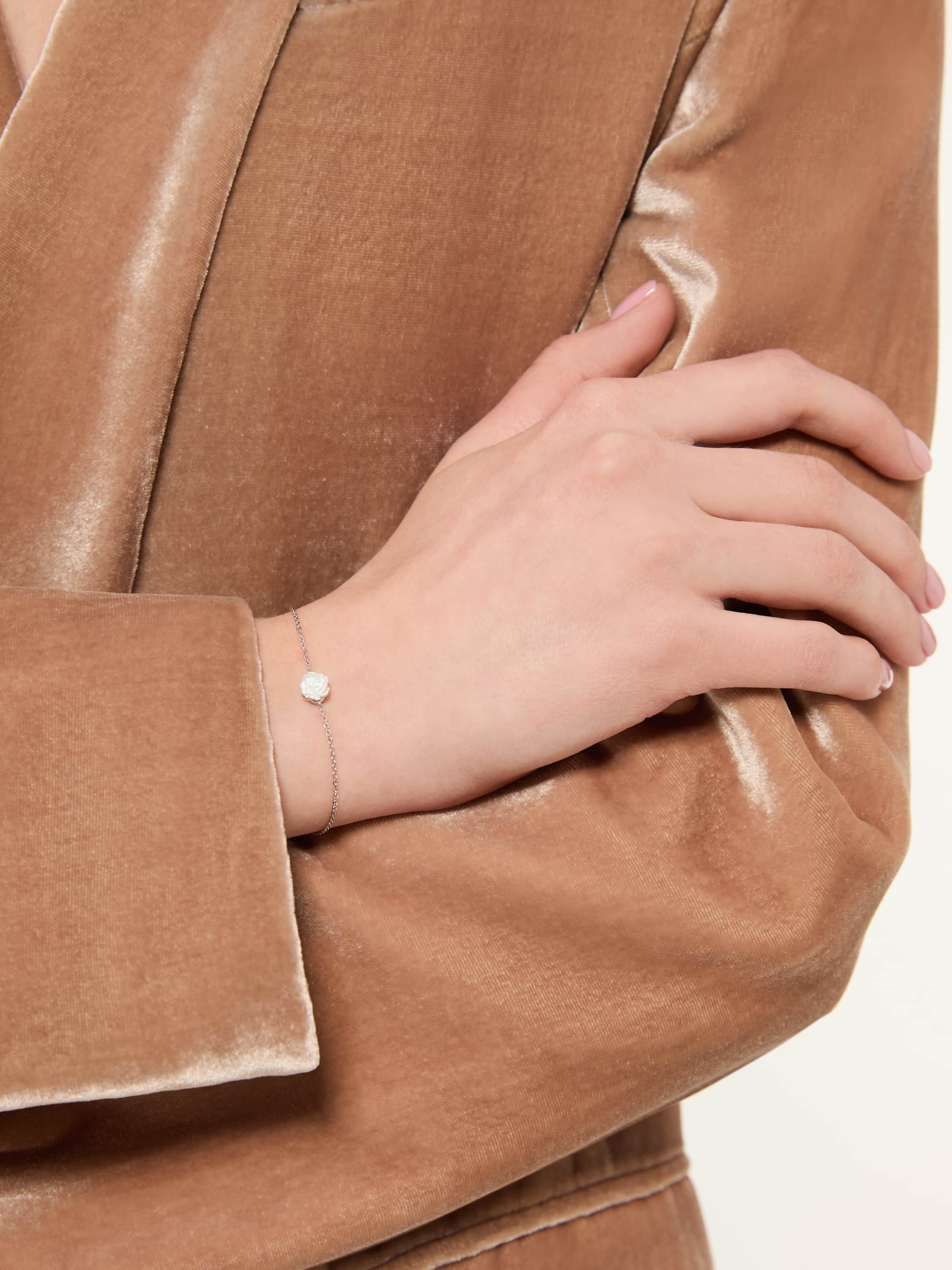 Bracelet made of white gold with a rose of white carved mother-of-pearl weighing 1.50 ct.