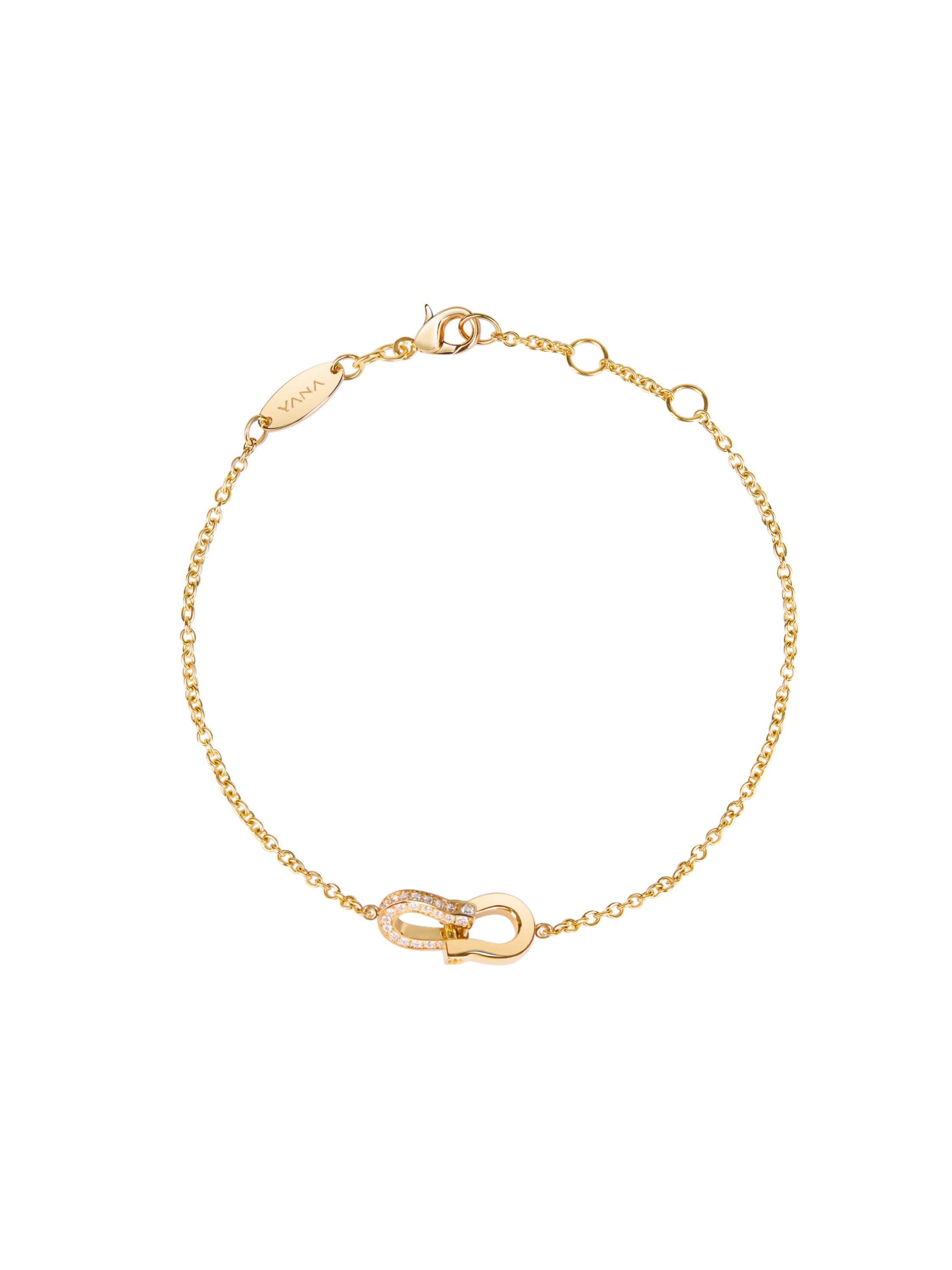 Bracelet with horseshoes in yellow gold with 46 round diamonds 0.18 ct.