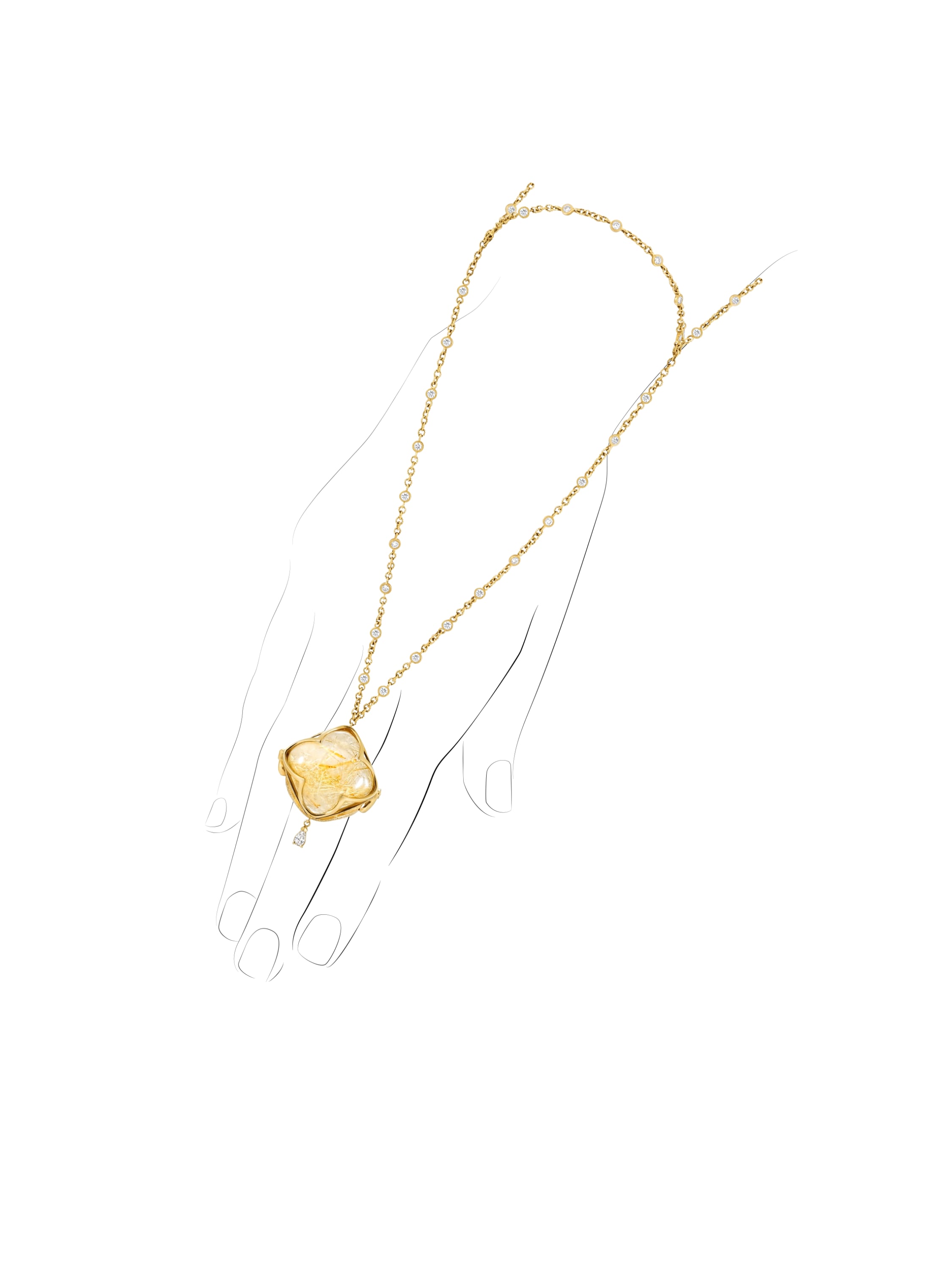 Slave bracelet in yellow gold with 1 rutilated quartz weighing 3.87 g, 73 round diamonds weighing 0.31 ct, 2 round diamonds weighing 0.03 ct, 30 round-cut diamonds weighing 0.9 ct.