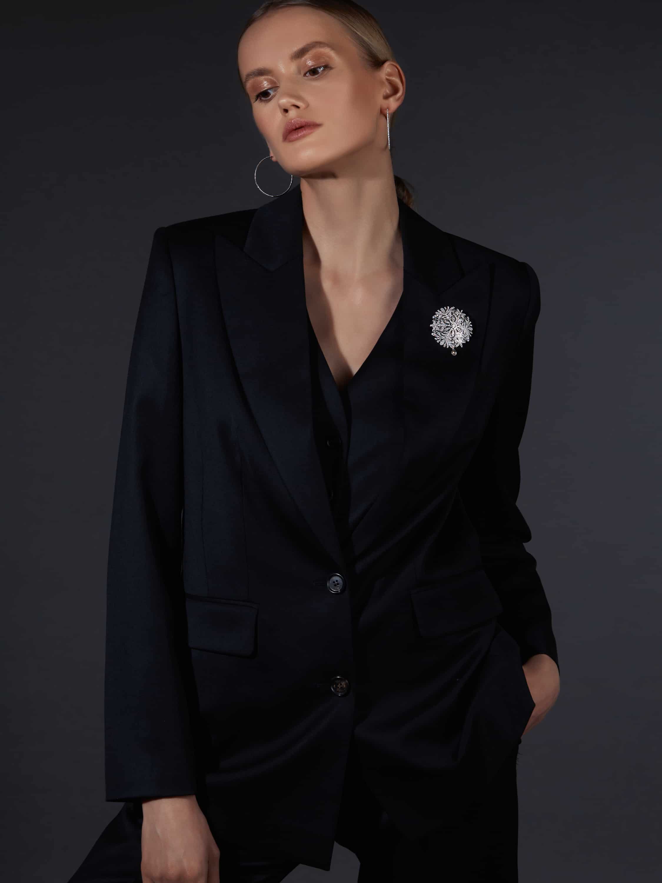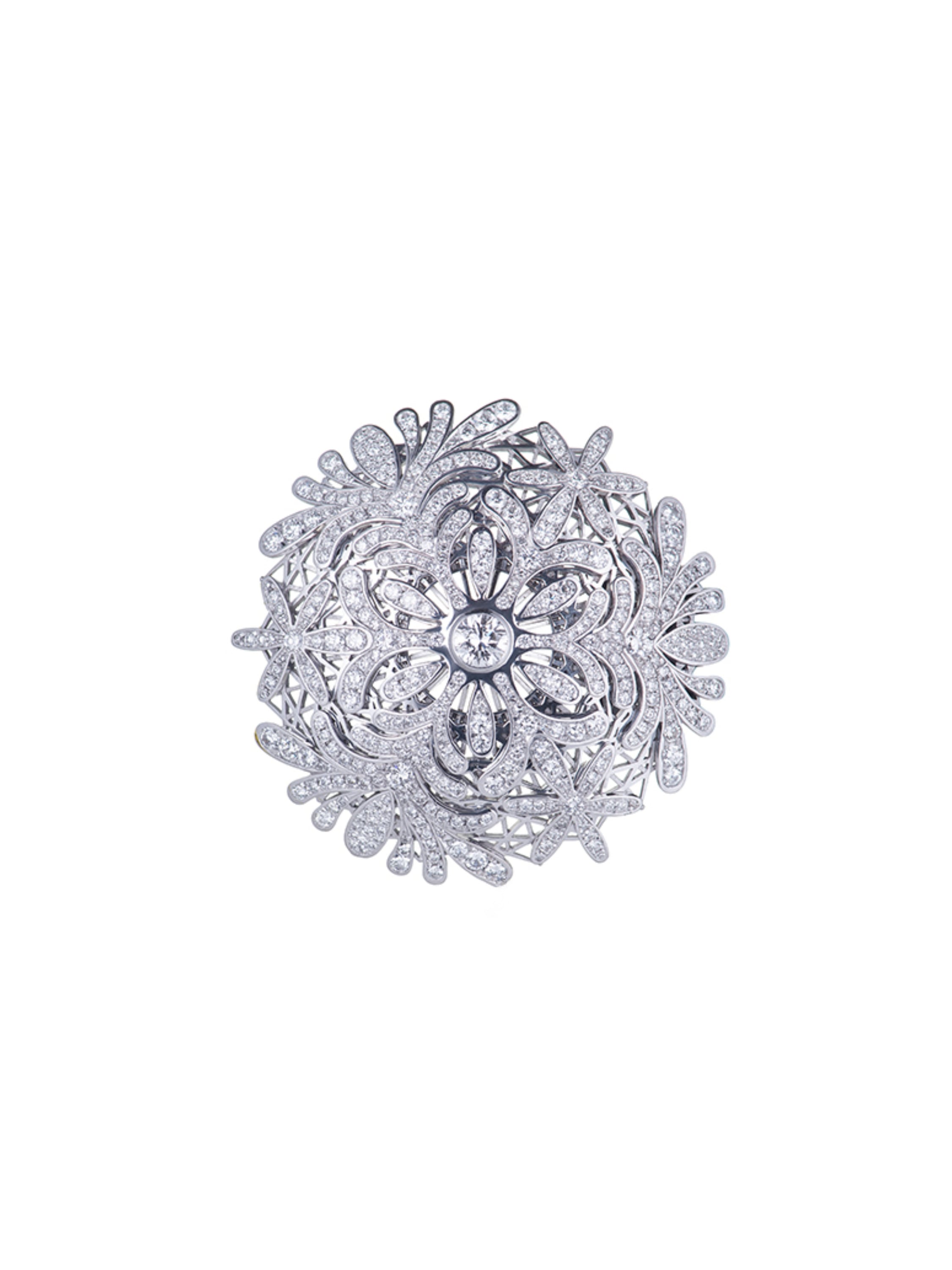 White gold snowflake-shaped brooch with 391 round-cut diamonds weighing 6.57 ct.