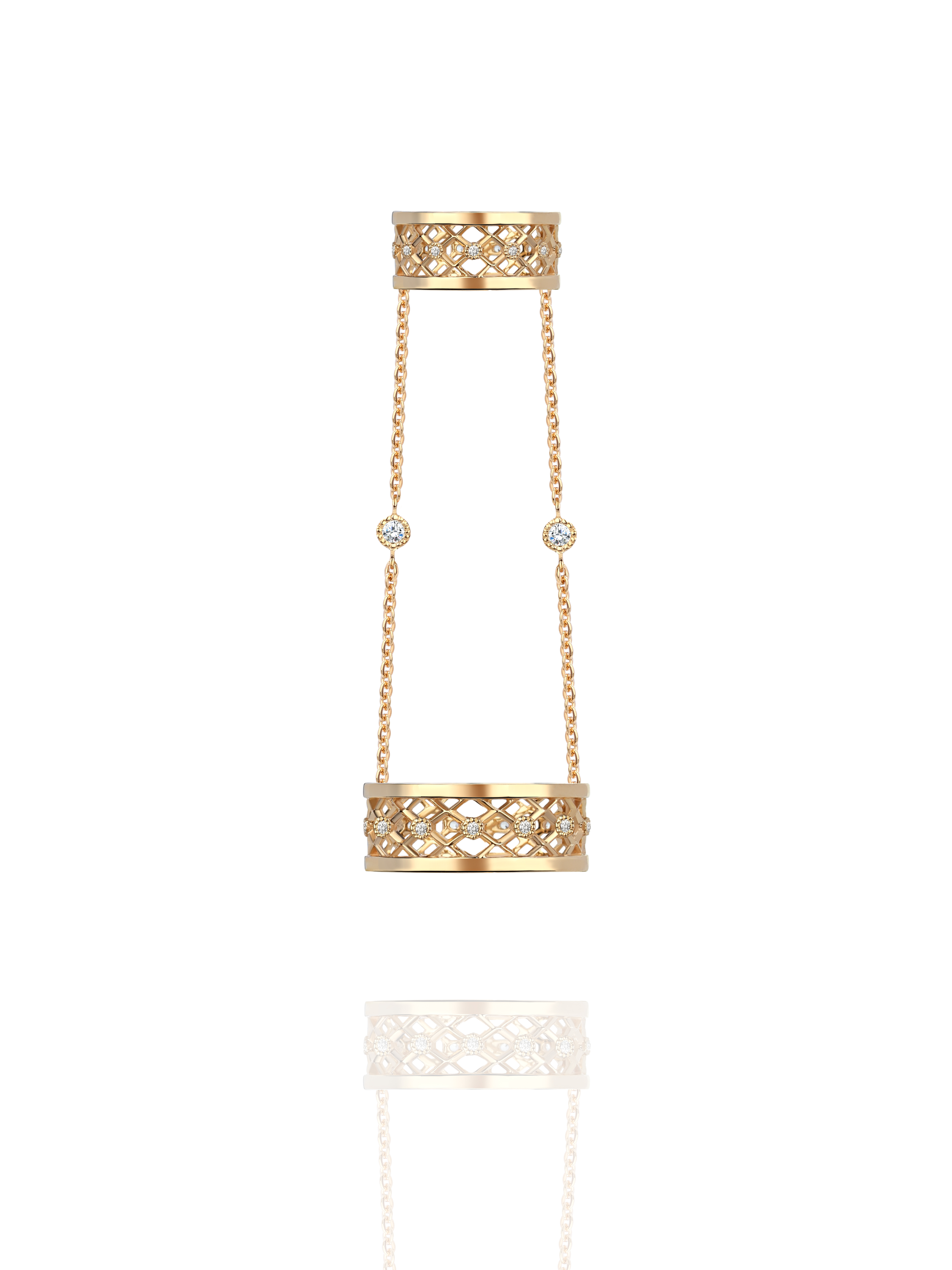 Double yellow gold ring with 28 colorless round-cut topazes weighing 0.18 ct.