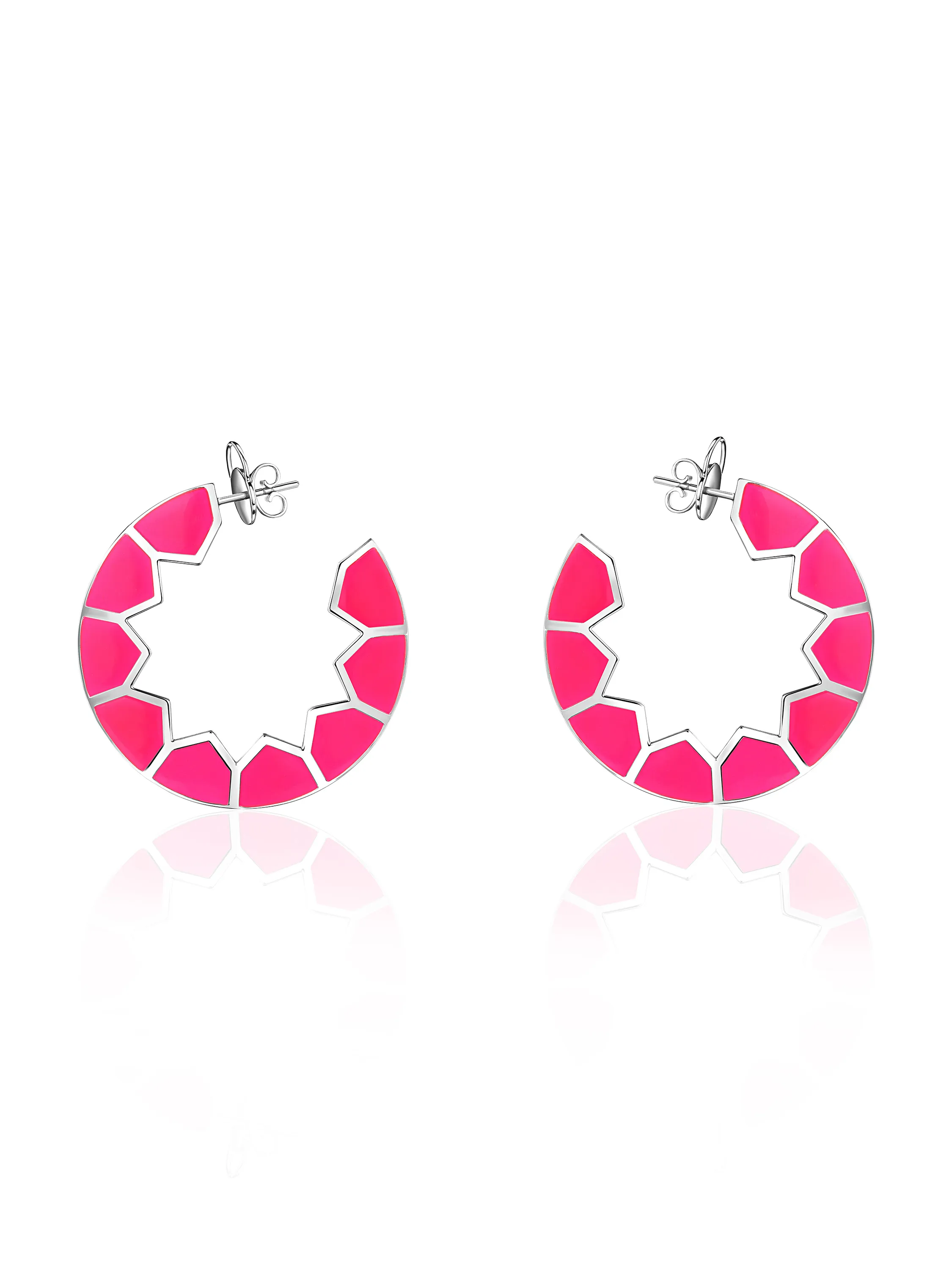 White gold hoops with pink enamel. Diameter: 4.5 cm