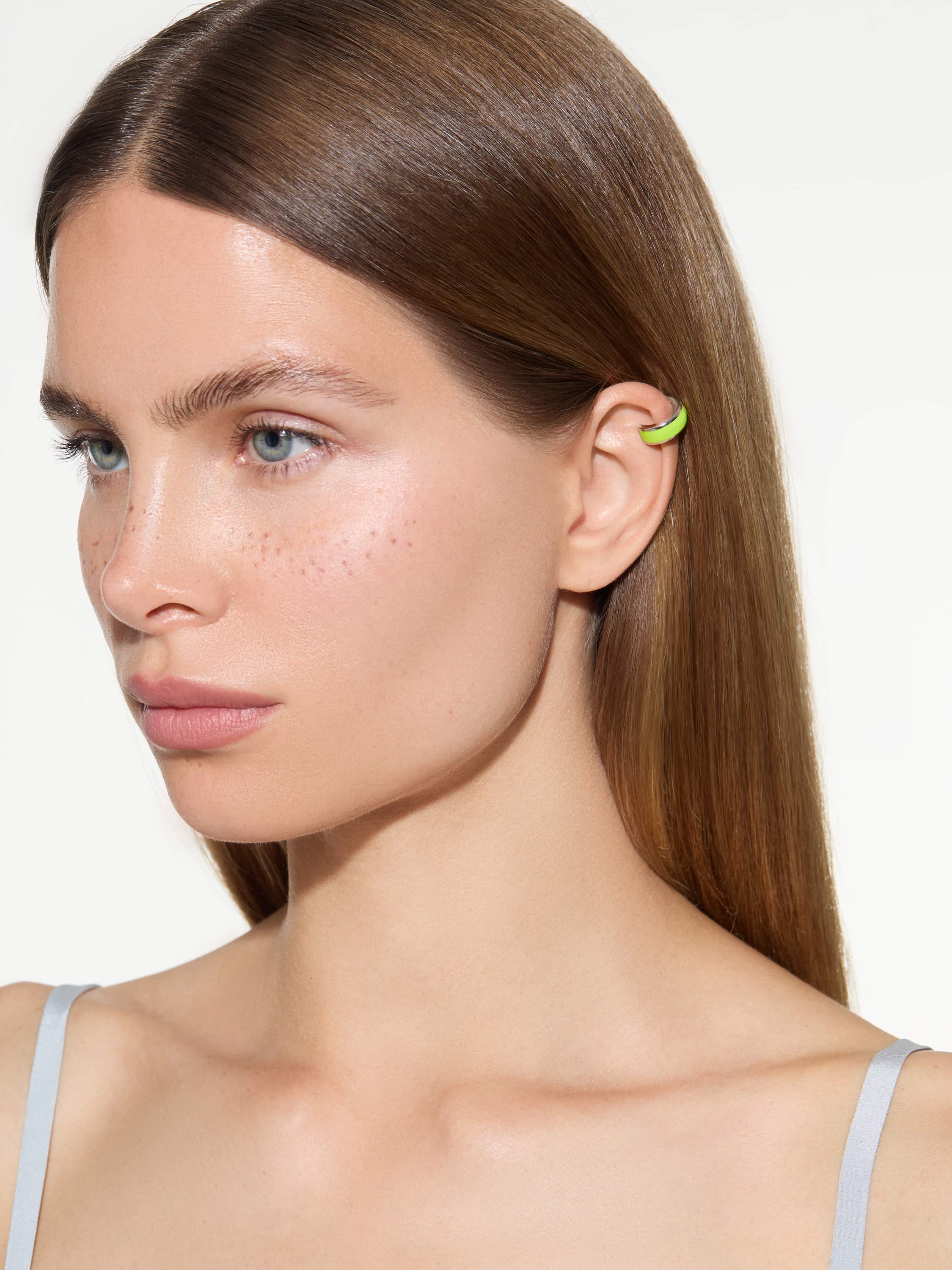 White gold ear cuff with lime-colored enamel.