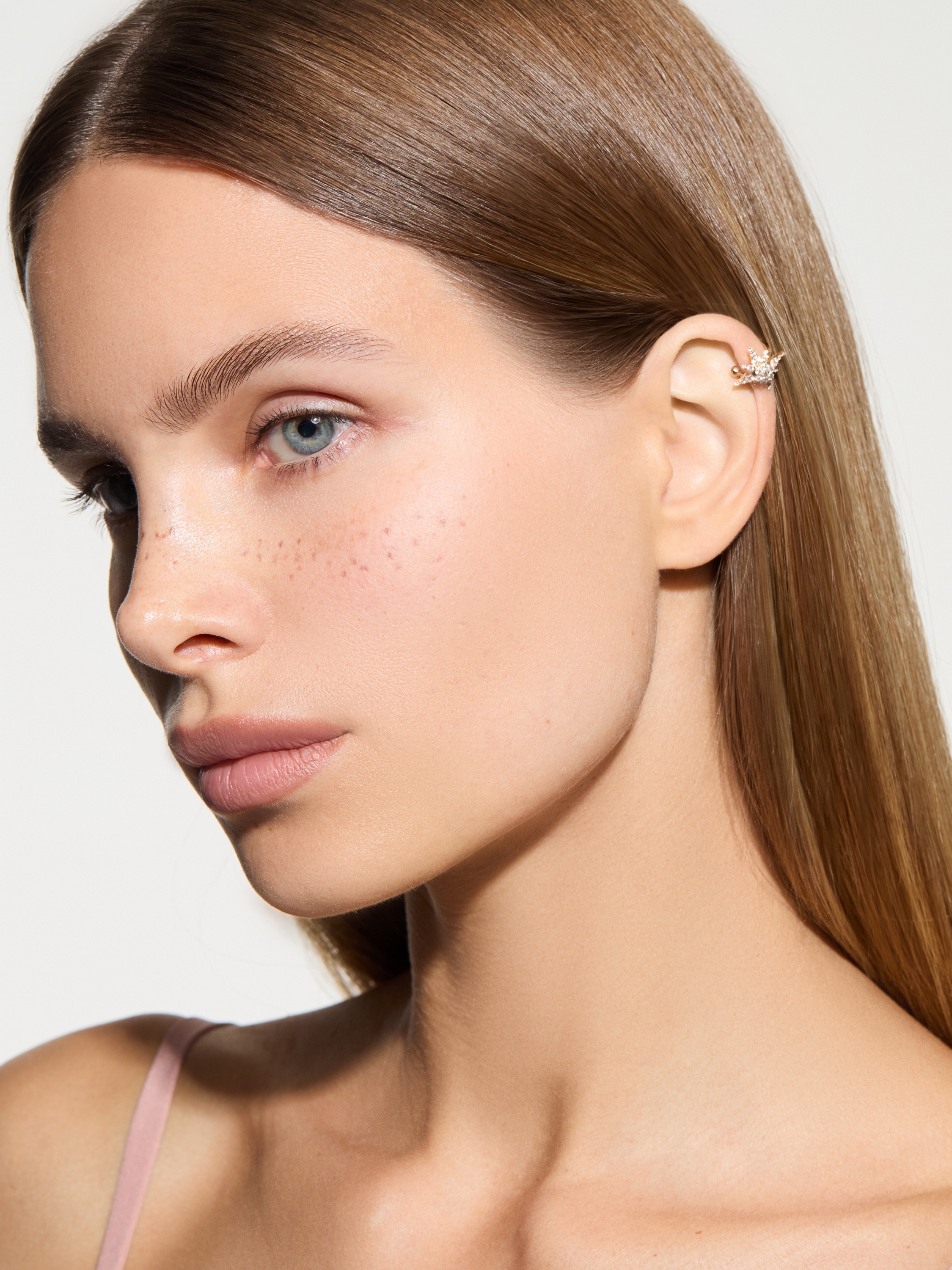 A star-shaped ear cuff in yellow gold with 27 round-cut diamonds with a total weight of 0.43 ct.