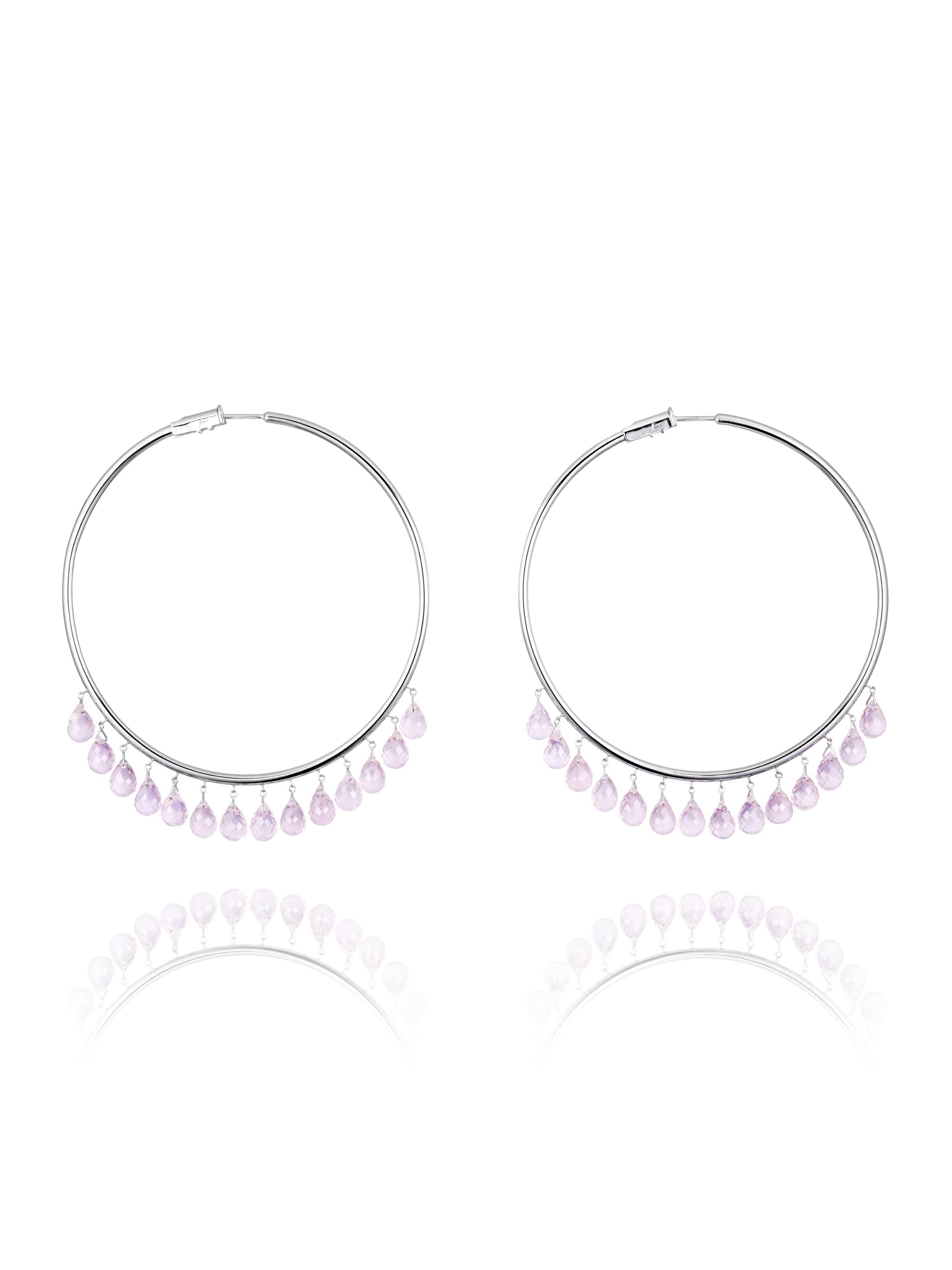 White Gold & Briolette-cut Pink Quartz Hoop Earrings