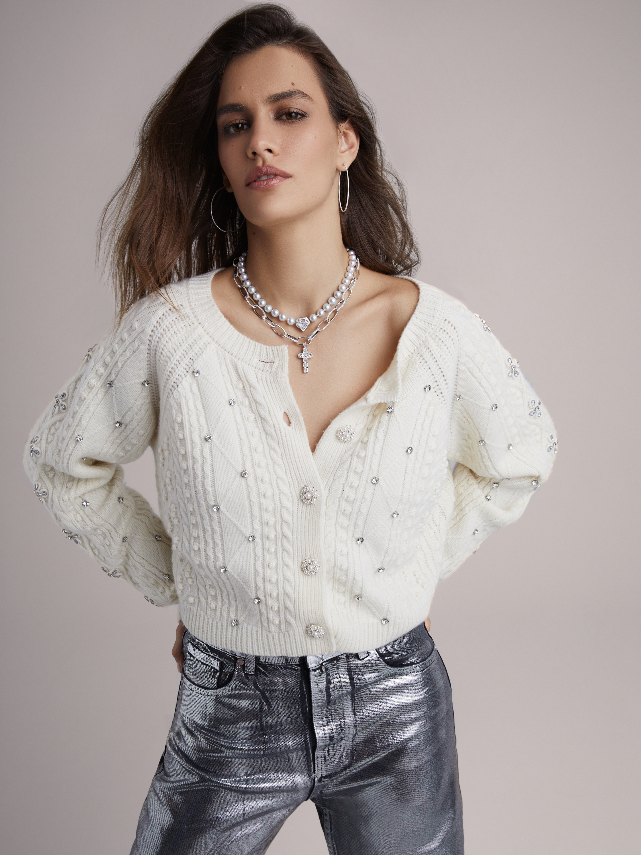 Hoop earrings in 18K white gold, set with 288 round diamonds with a total weight of 1.44 ct. Diameter: 6 cm.
