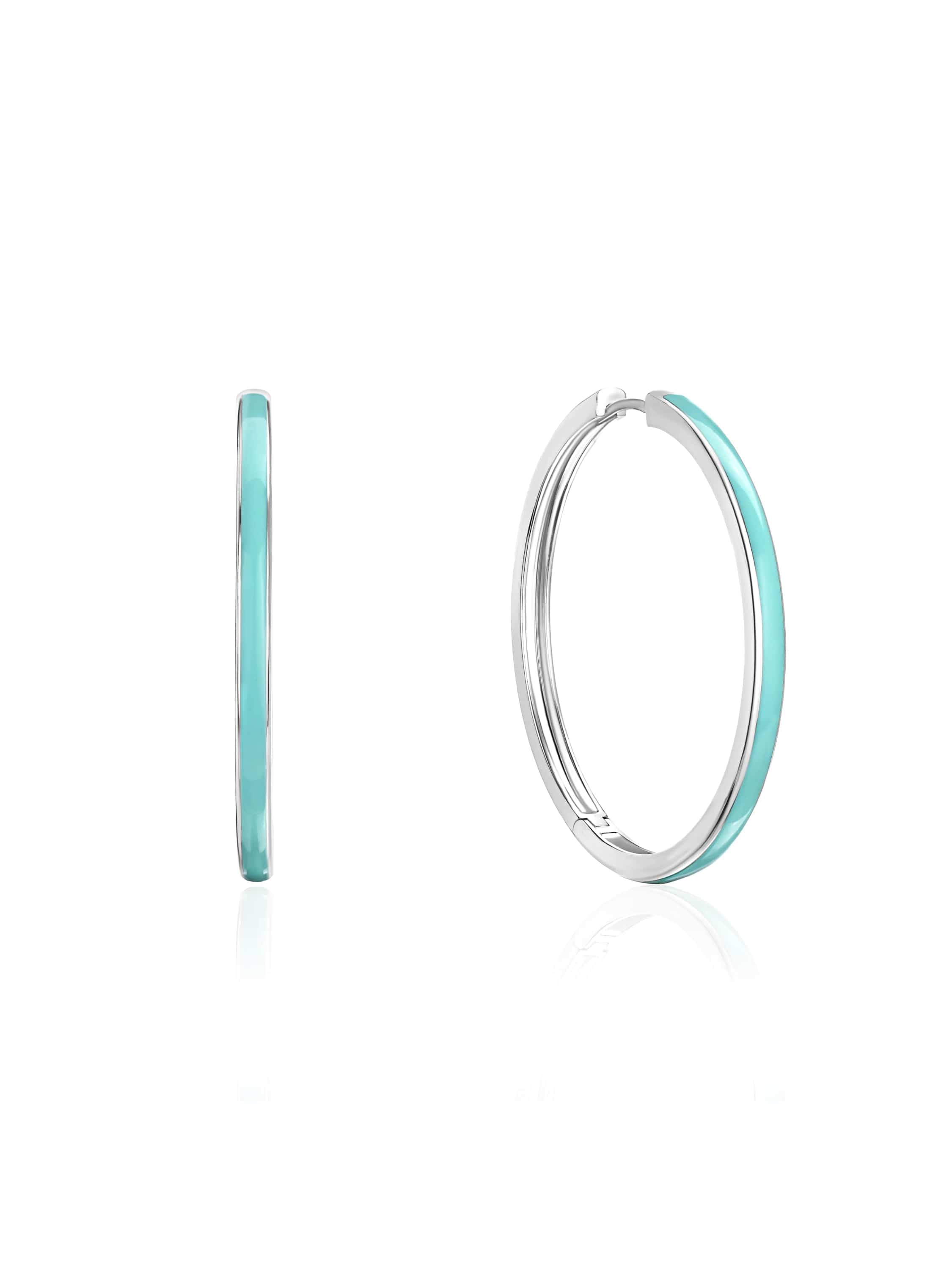 White gold hoops with Paraiba-colored enamel