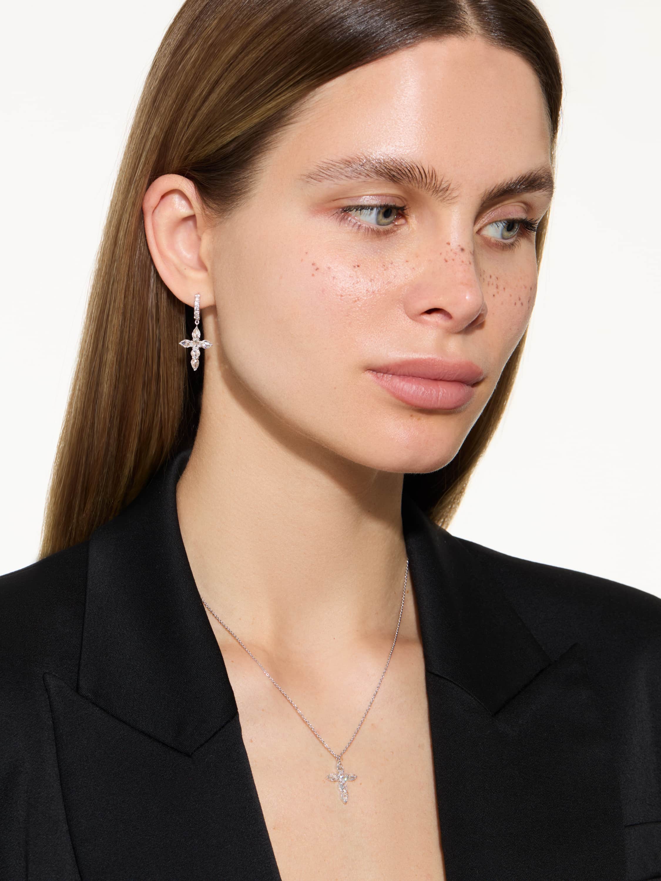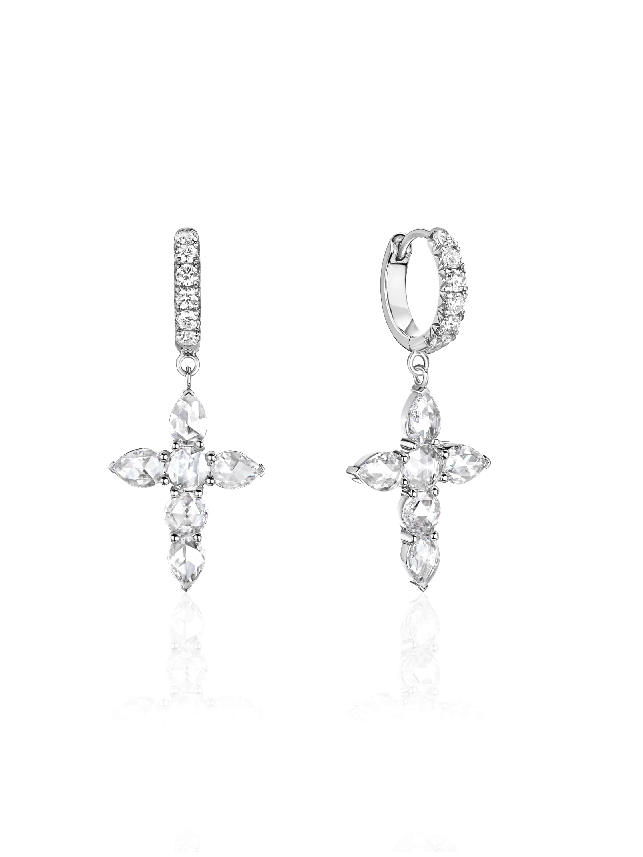 White gold hoops with cross pendants and Rose Cut diamonds