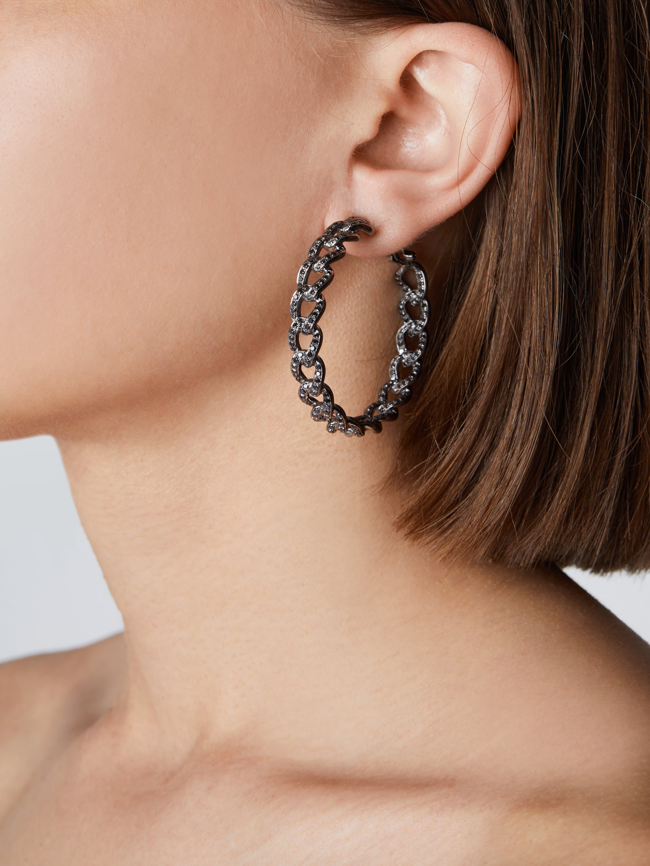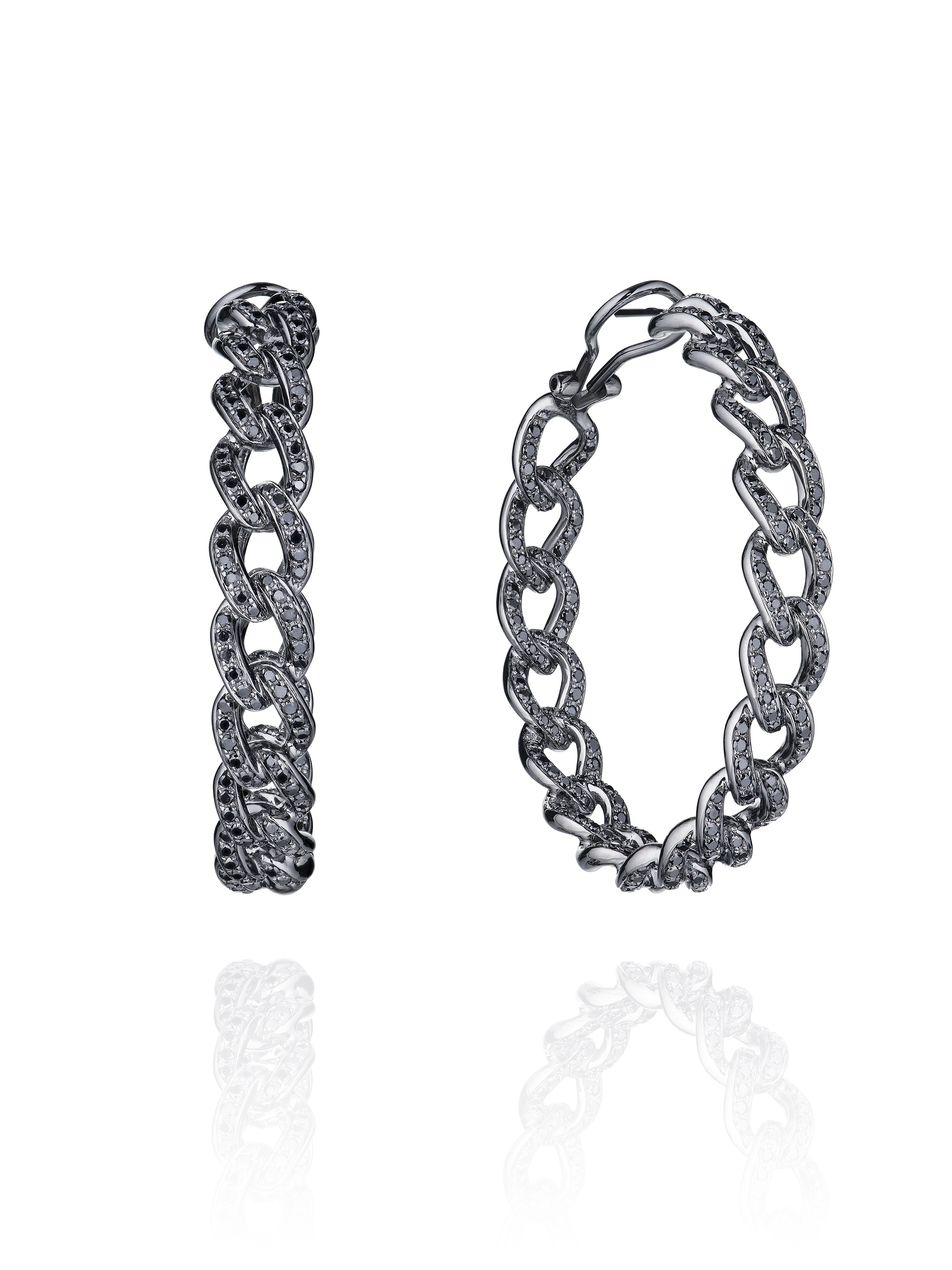 Hoops made of blackened gold, set with 430 black round diamonds with a total weight of 3.62 ct. Diameter: 4.5 cm.