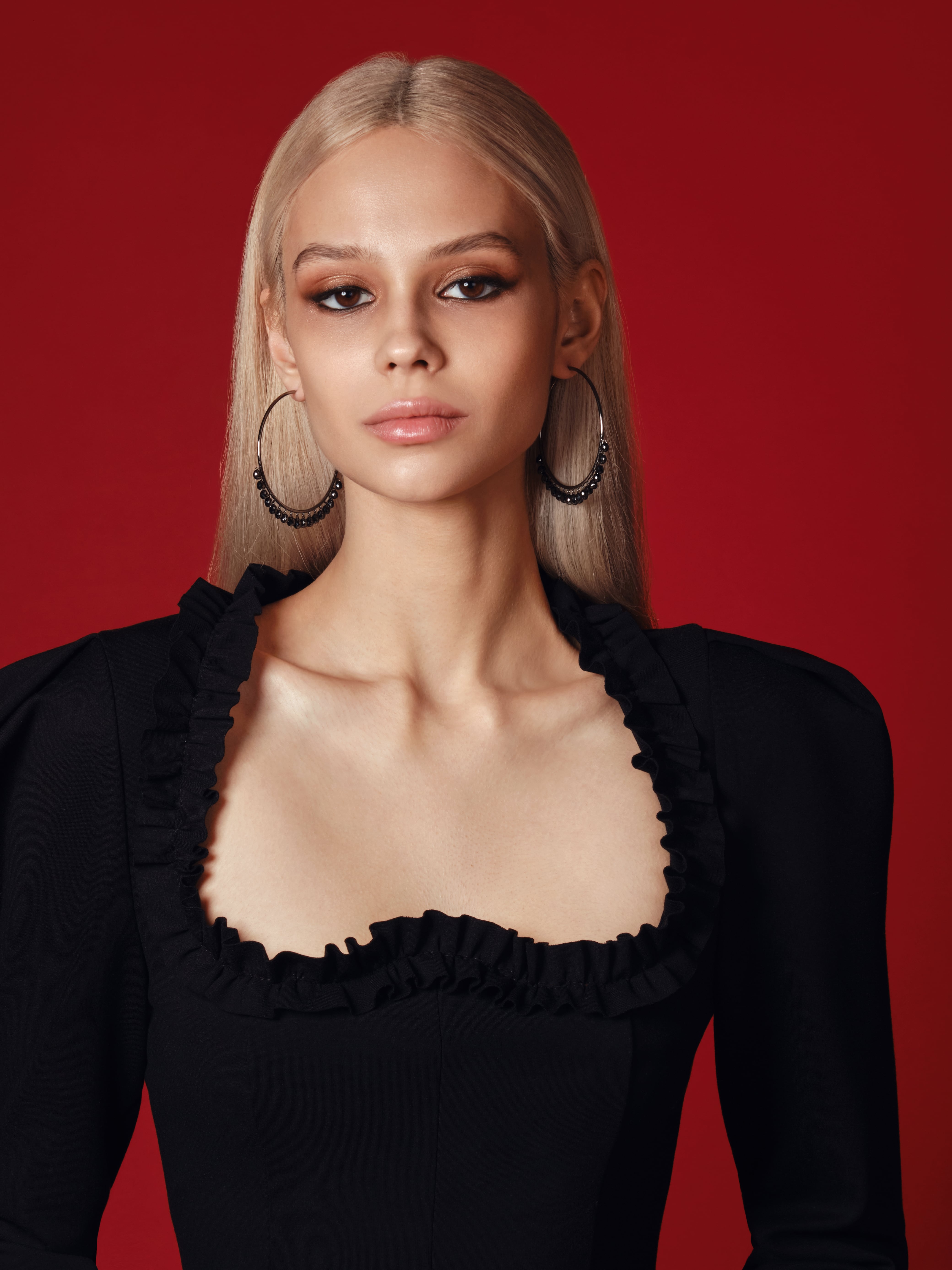 Hoop earrings in blackened gold with briolette-cut black diamonds