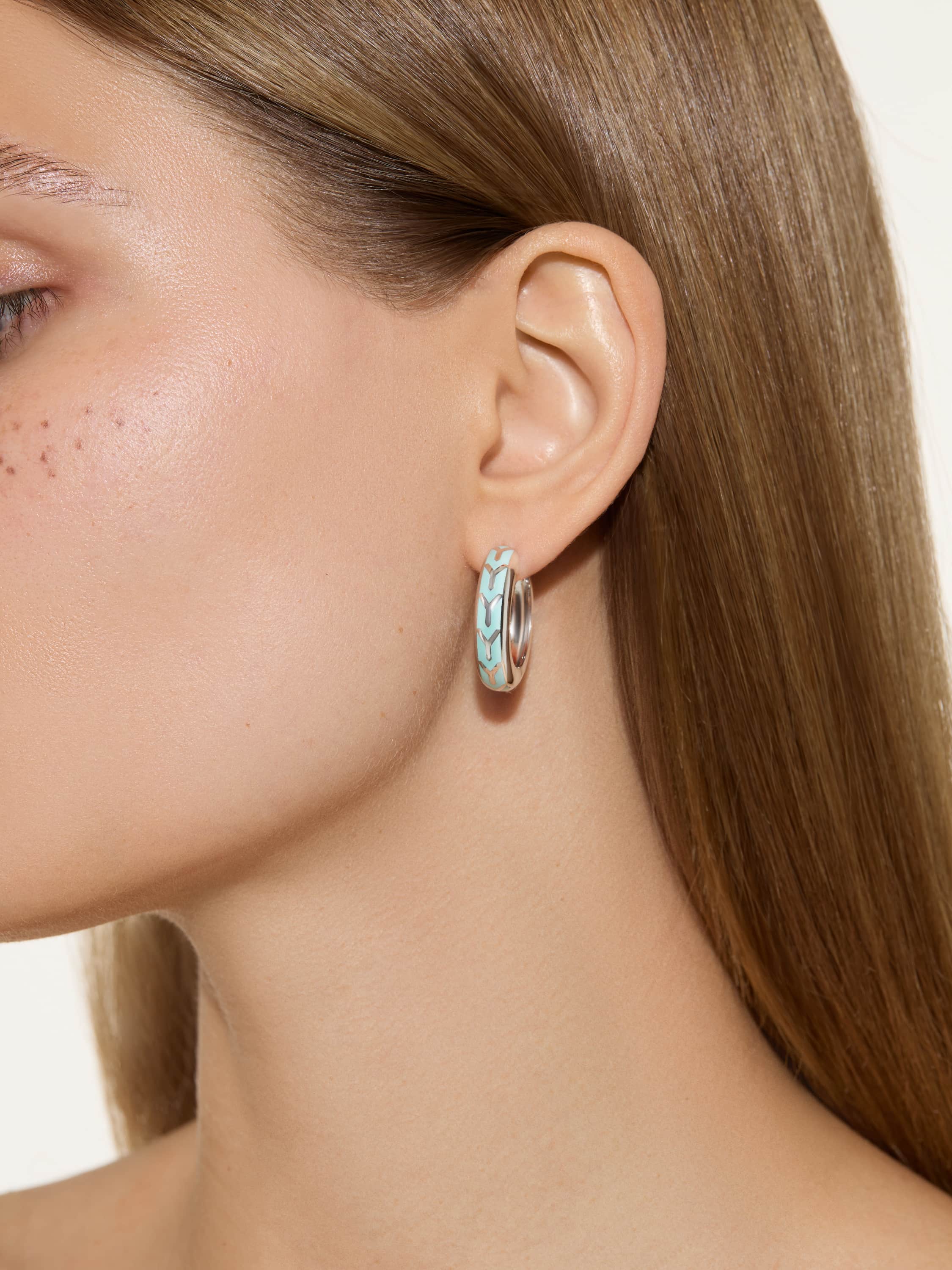 Paraiba-colored enamel hoops. Diameter: 2.5 cm.