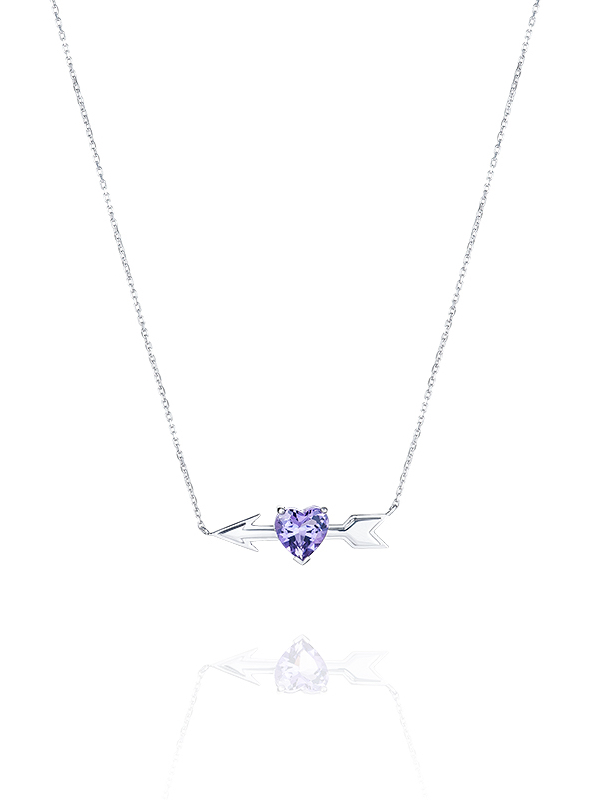 White gold necklace with heart-cut amethyst