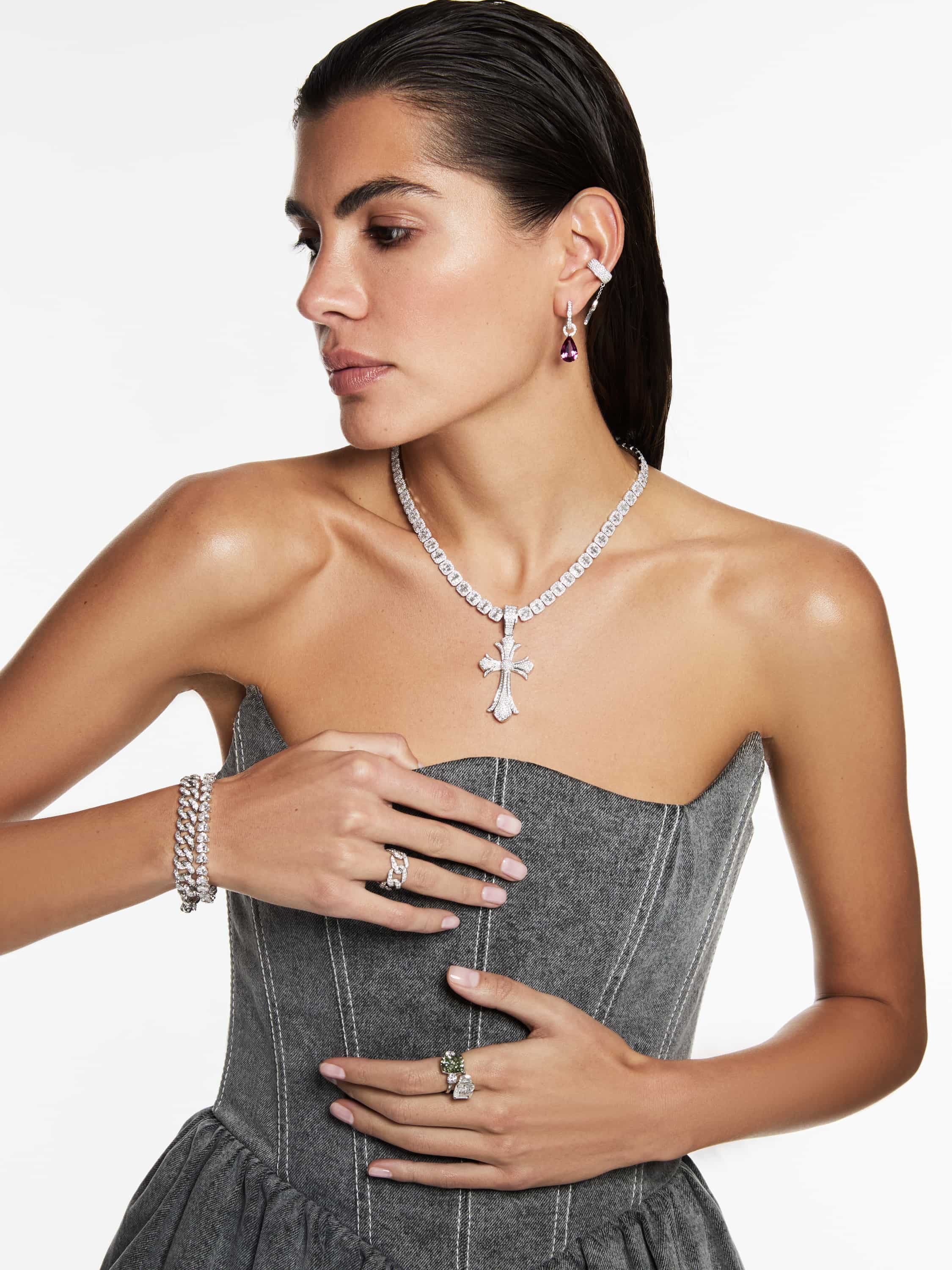 White gold necklace with 1,200 round diamonds totalling 7.21 ct and 360 baguette-cut diamonds totalling 6.79 ct.