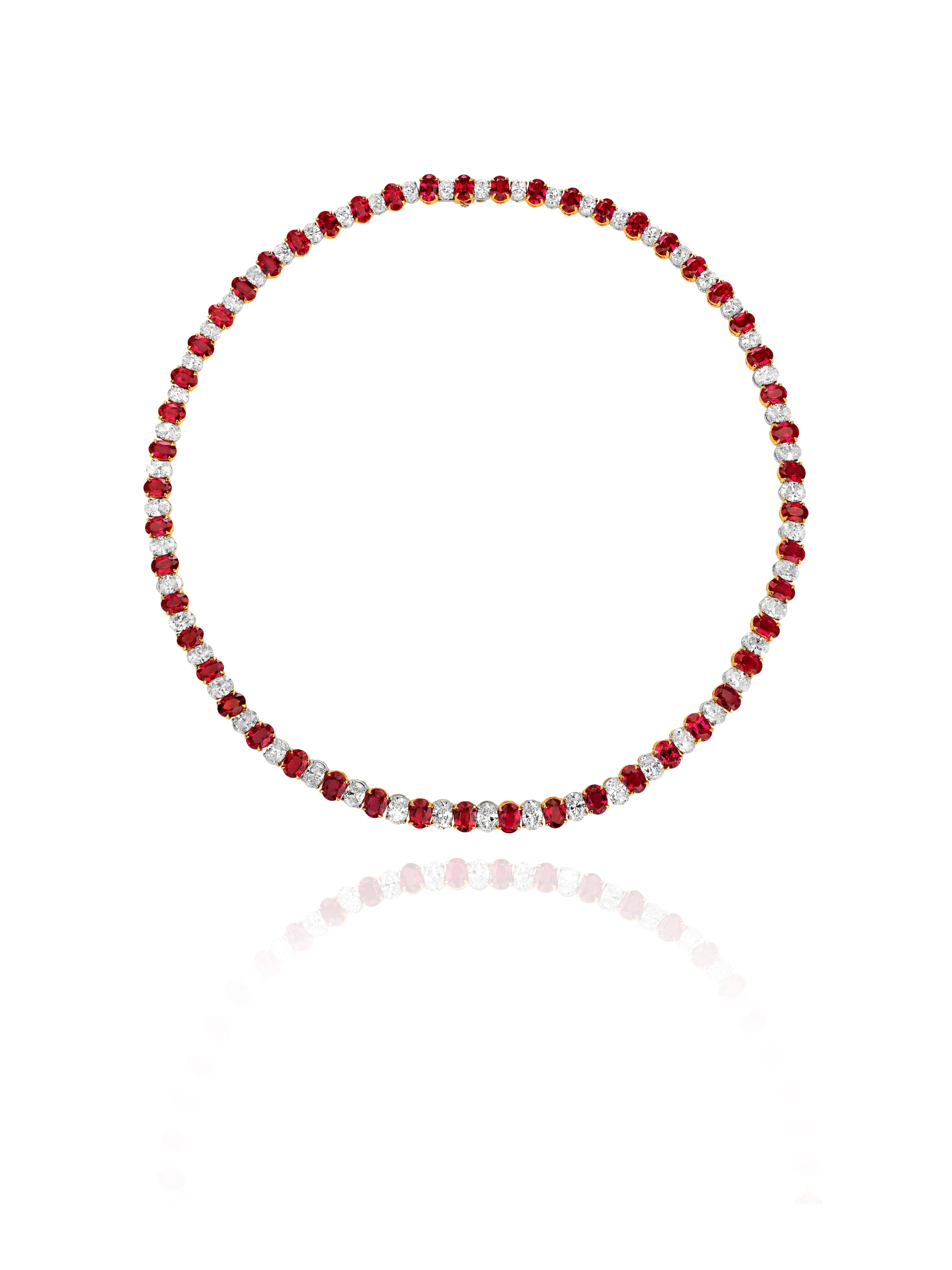 White gold necklace with 49 oval diamonds 15.00 ct D-F/VVS-VS and 48 oval-cut rubies weighing 22.70 ct.