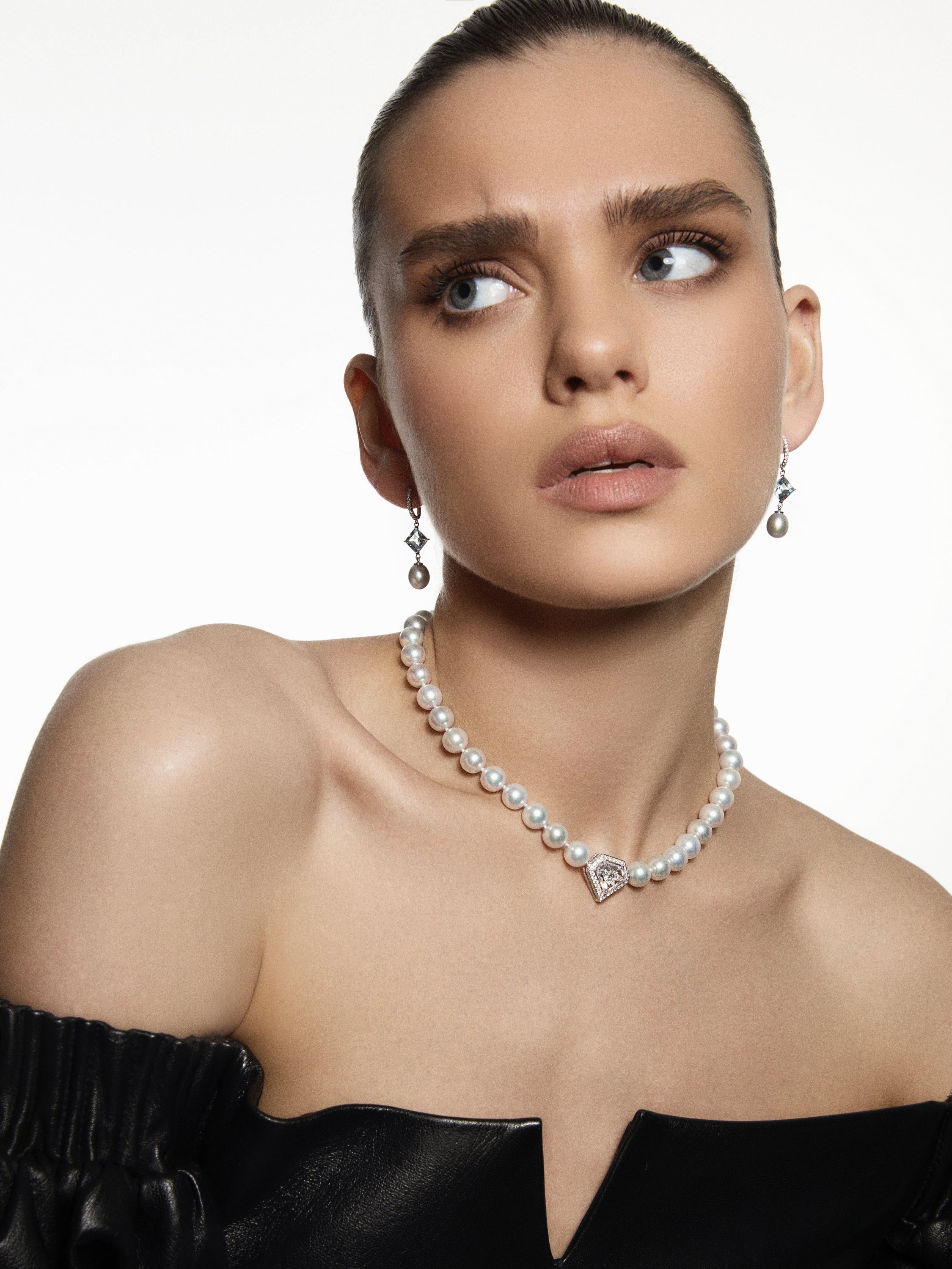 Fantasy Cut Diamond, Grey Pearl & White Gold Necklace