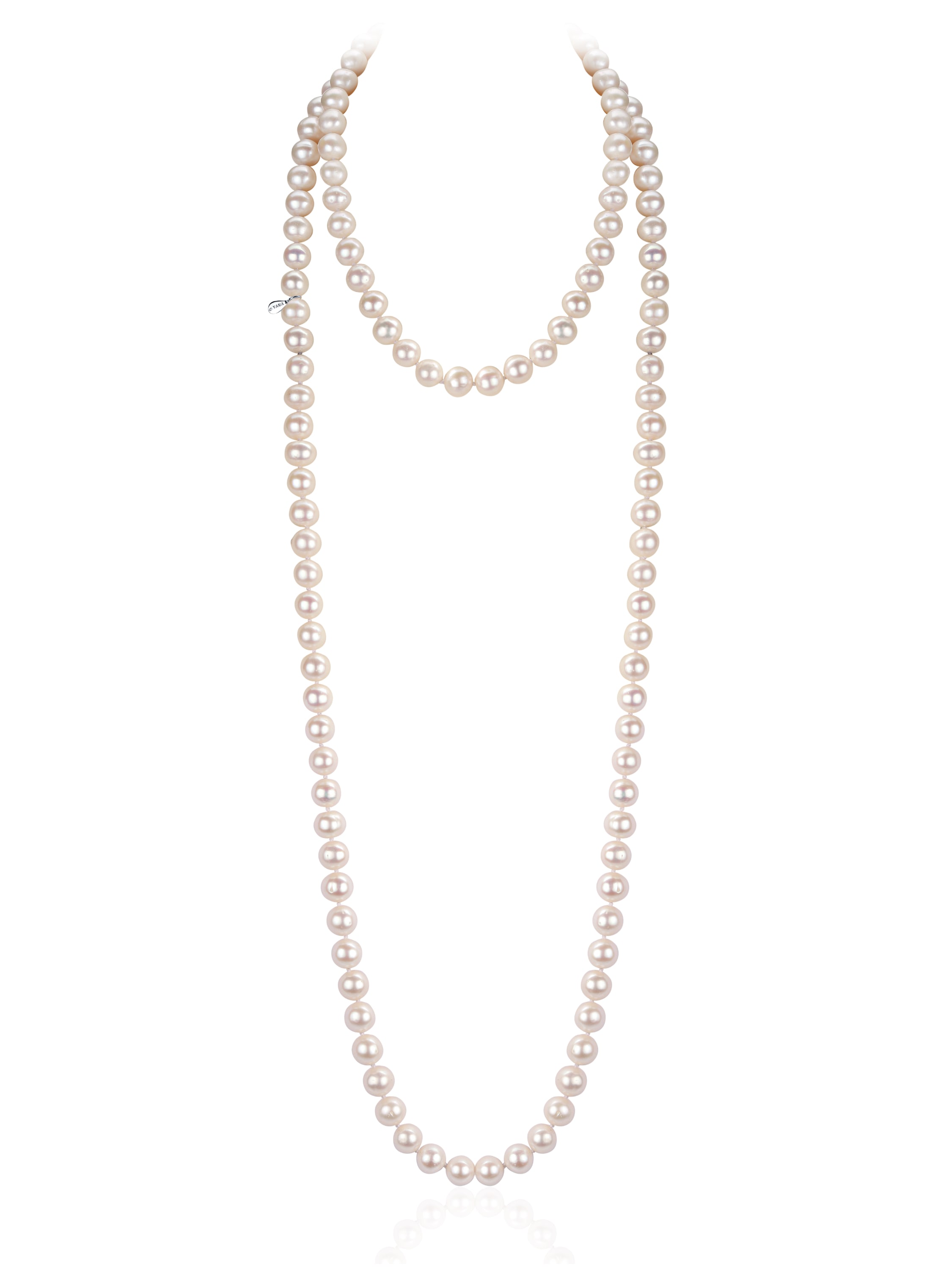 White gold necklace with pearl beads, 130 cm