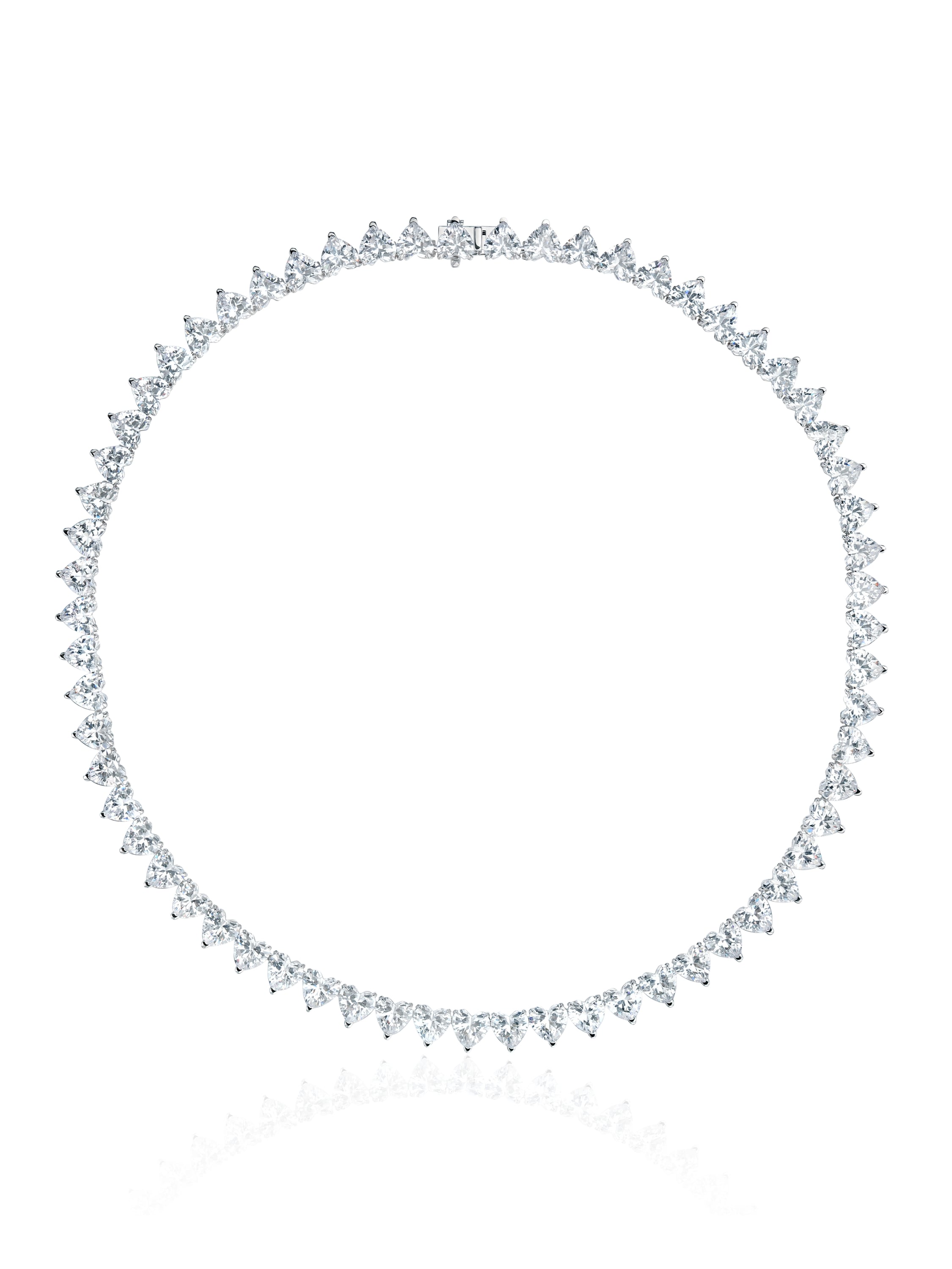 Necklace made of white gold with 63 heart-cut cubic zirconias with a total weight of 16.88 g.