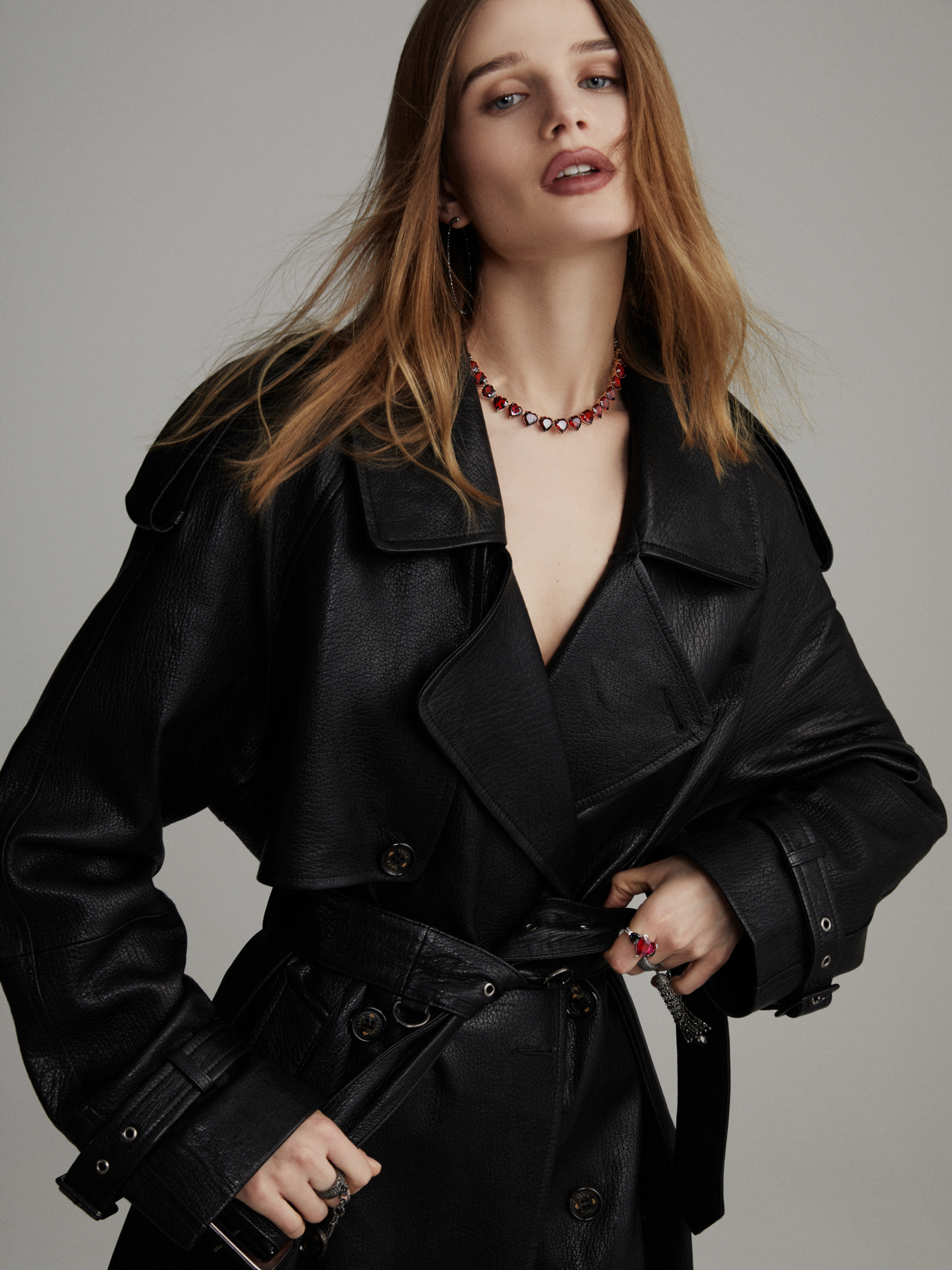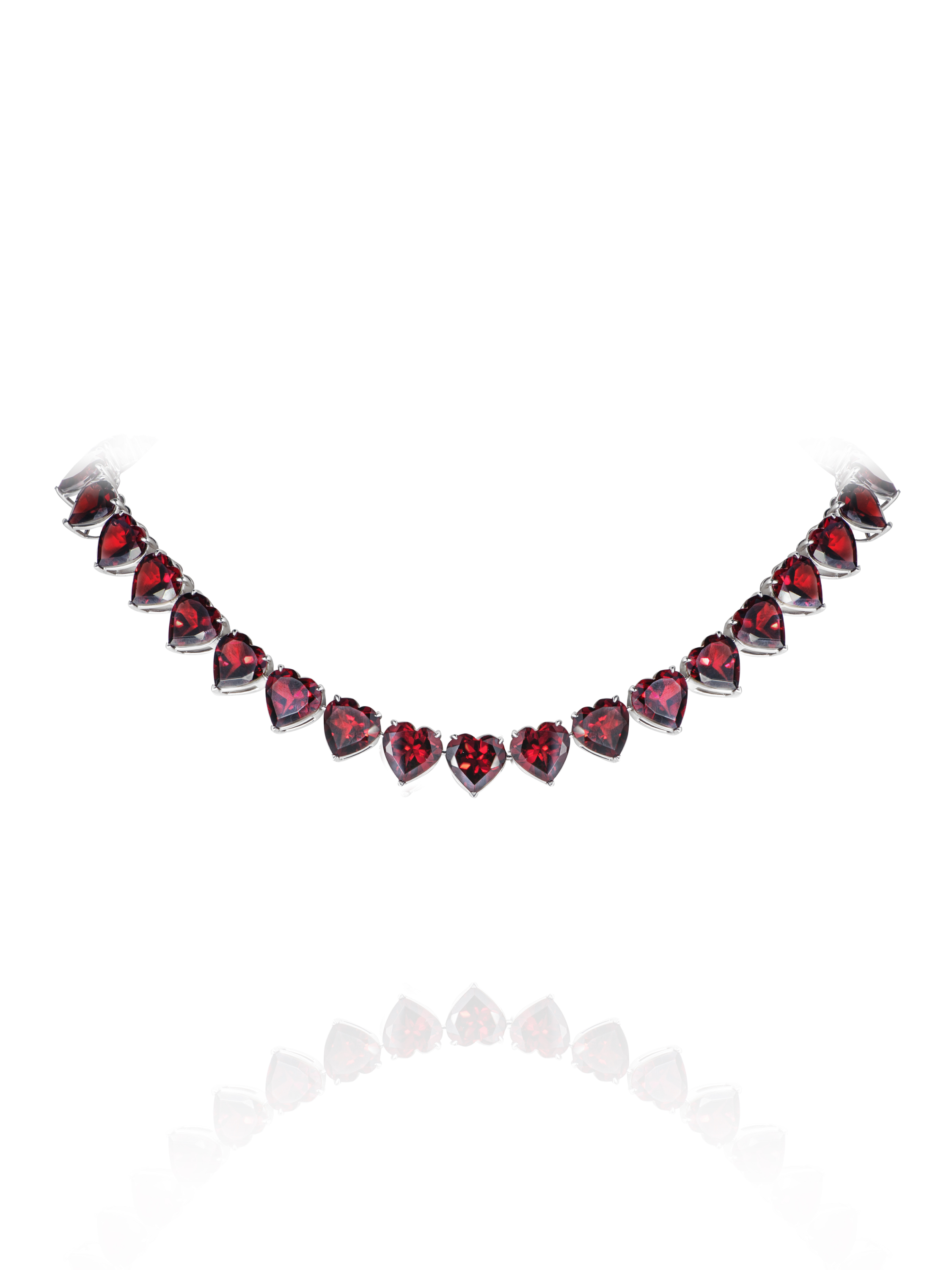 A white gold necklace inlaid with 36 heart-cut garnets with a total weight of 149.92 ct.