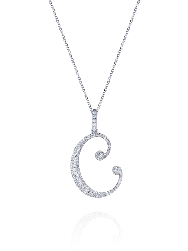 White gold necklace with a pendant in the shape of the letter C with 122 H/SI round-cut diamonds with a total weight of 0.53 ct.