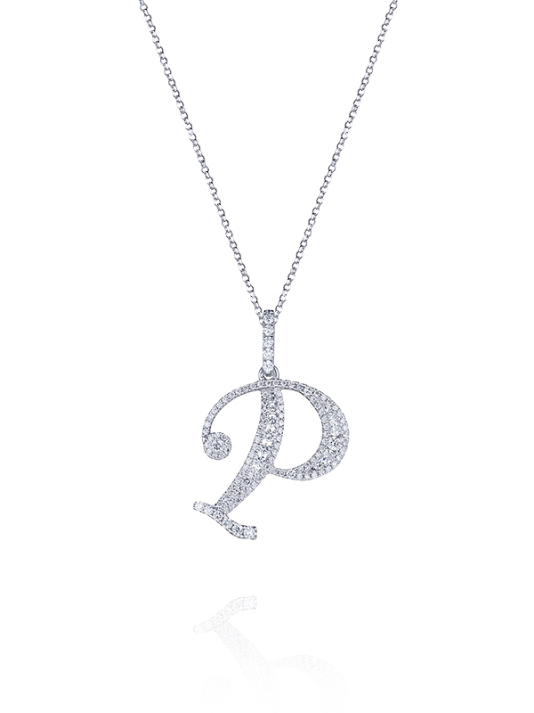 White Gold & Diamonds Letter "P" Necklace