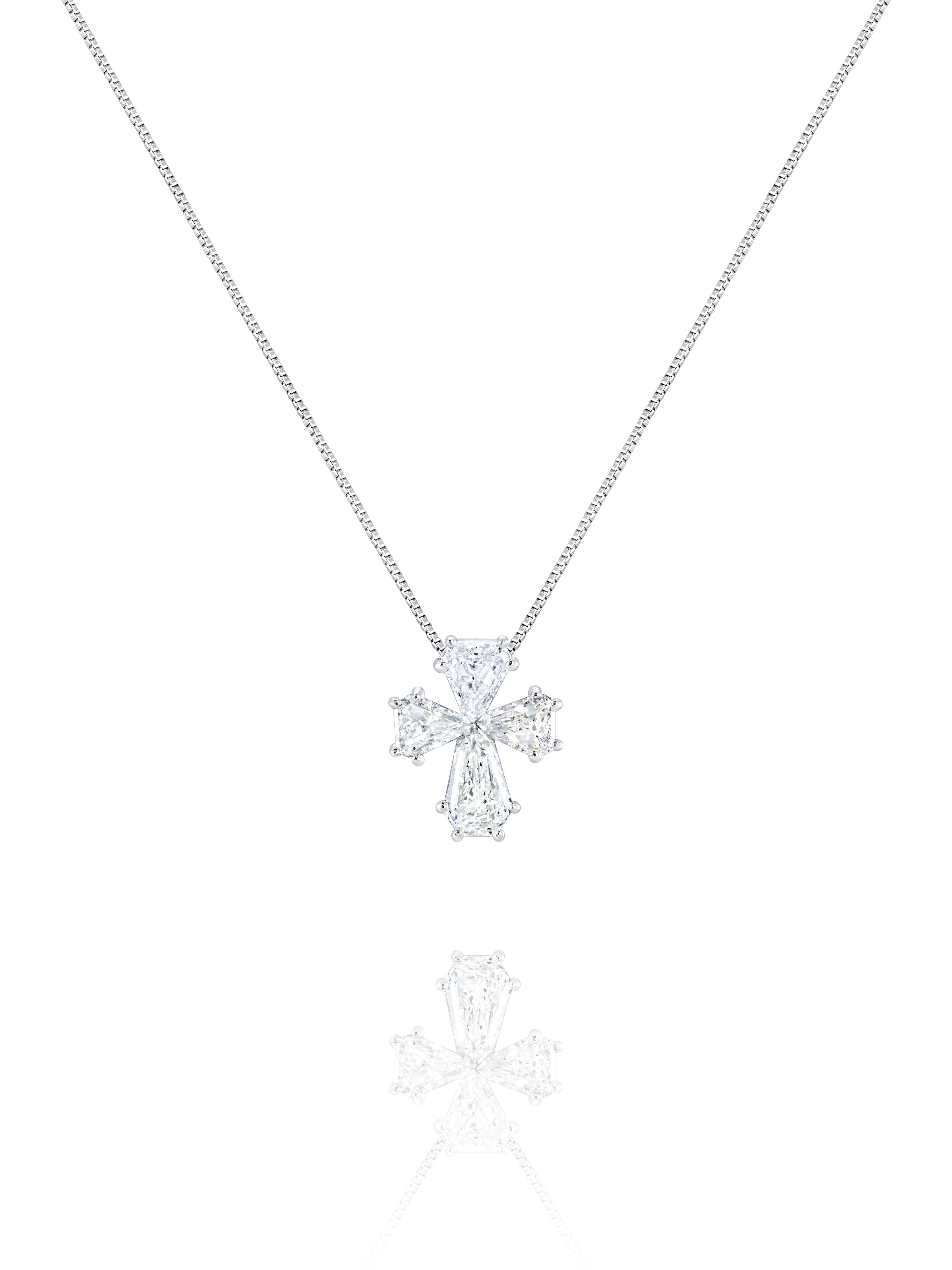 Necklace in white gold with a cross-shaped pendant and 4 fancy-cut diamonds with a total weight of 0.9 ct.