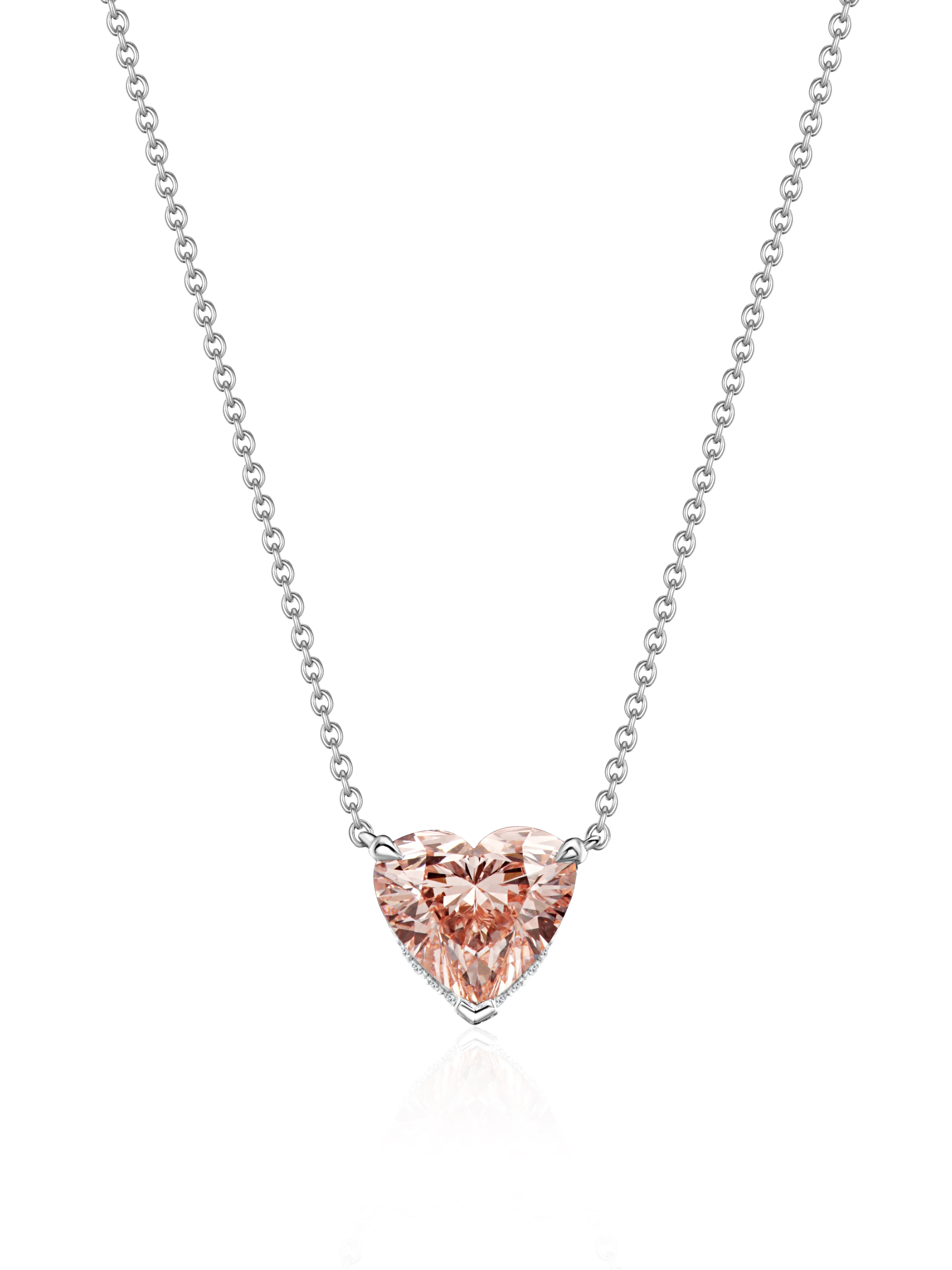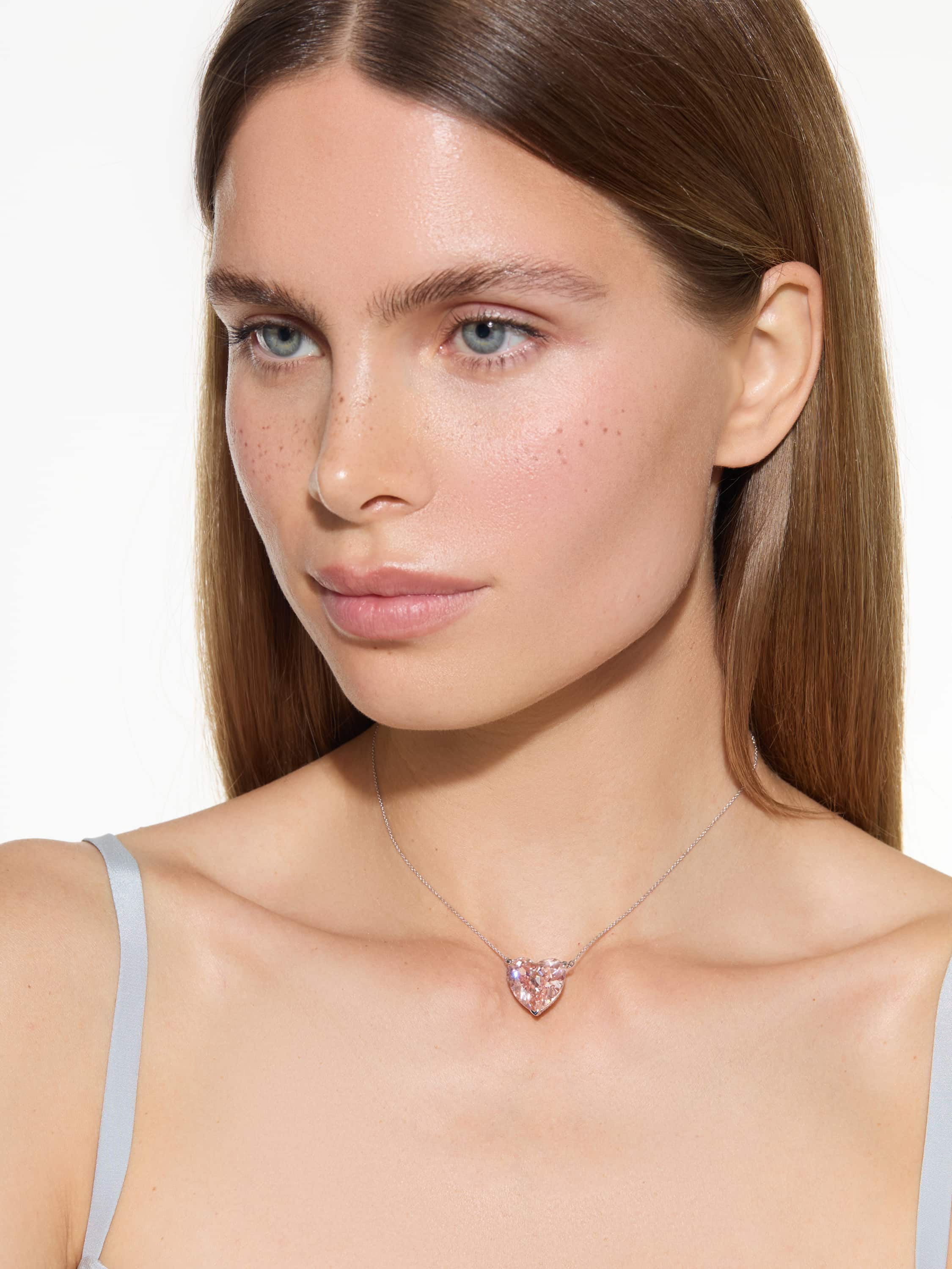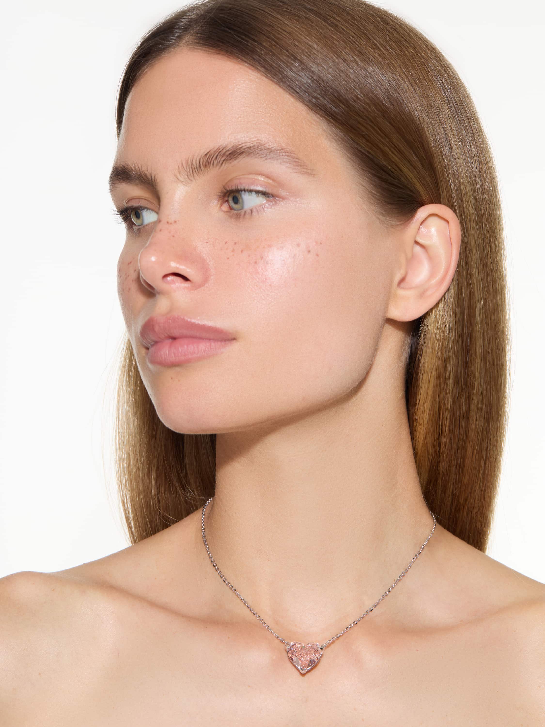 White gold necklace with a pink LG heart-cut diamond 3.05 ct FIP/VS1 and 68 round diamonds with a total weight of 0.27 ct.