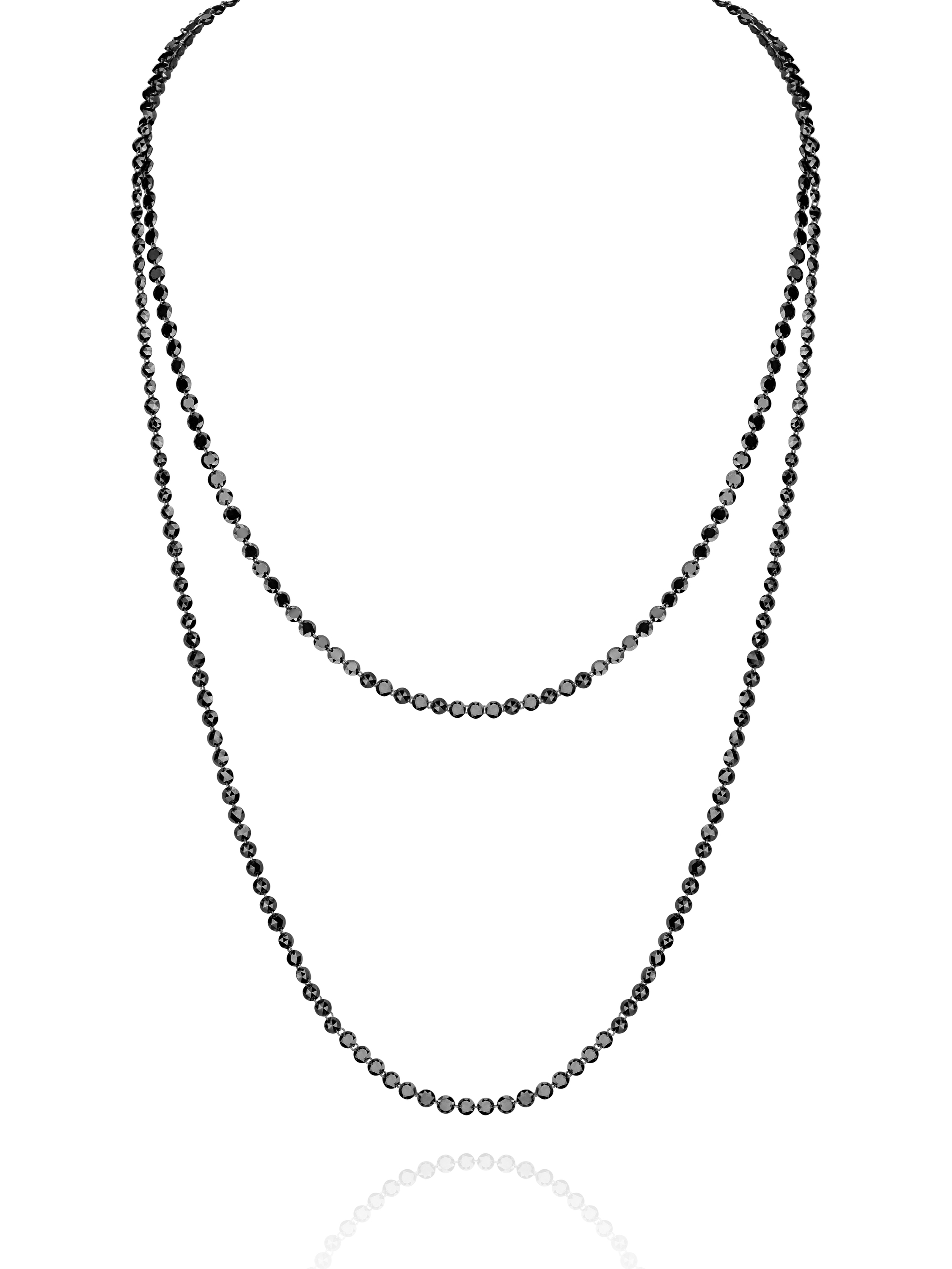 A necklace in blackened gold with 140 black rose-cut diamonds with a total weight of 67.85 ct and 30 black round-cut diamonds with a total weight of 0.16 ct.