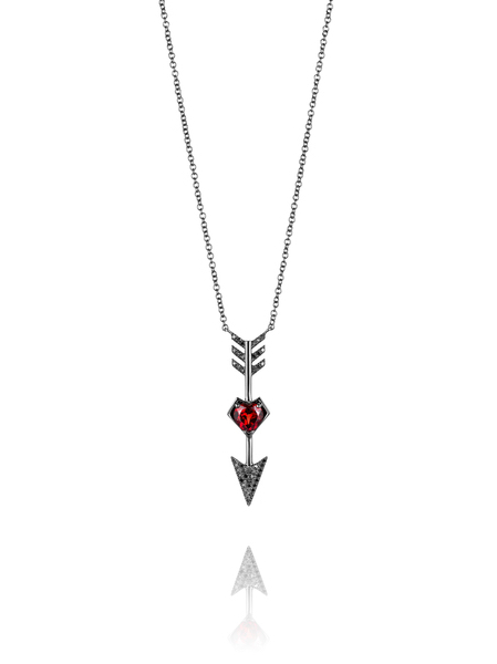 Black Gold, Garnet & Black Diamonds Arrow Necklace