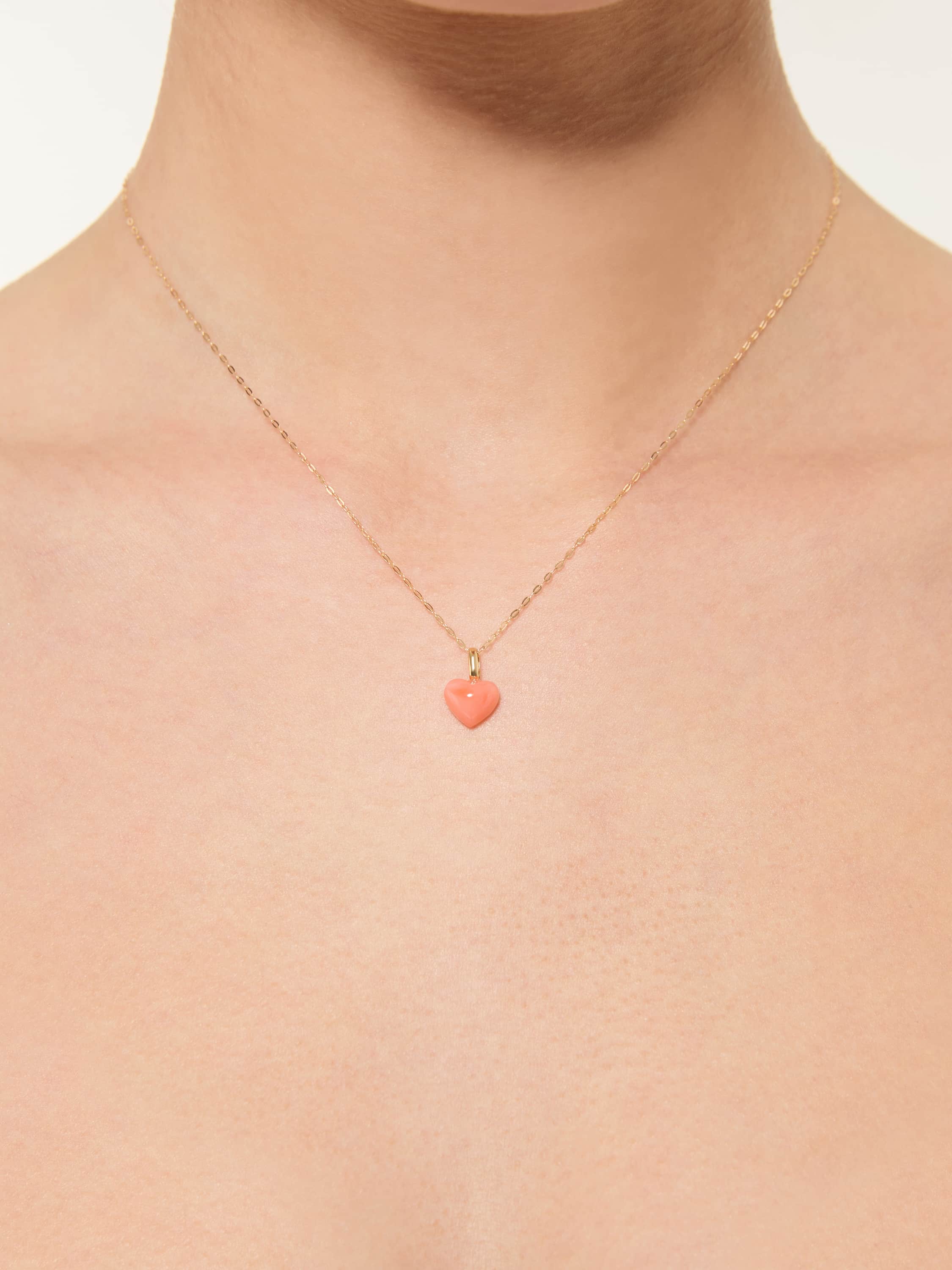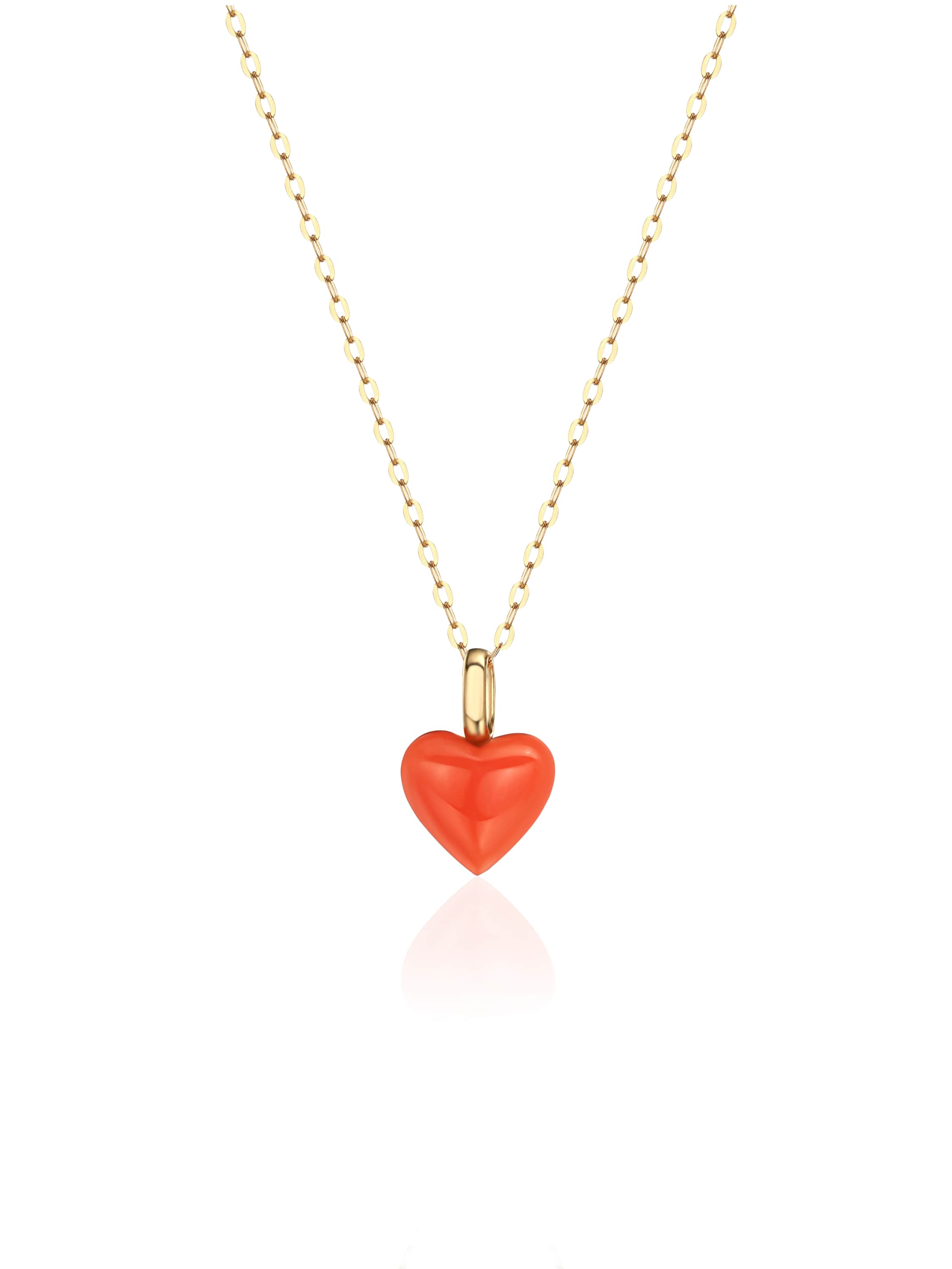 Yellow gold necklace with a heart-cut coral weighing 0.42 ct.