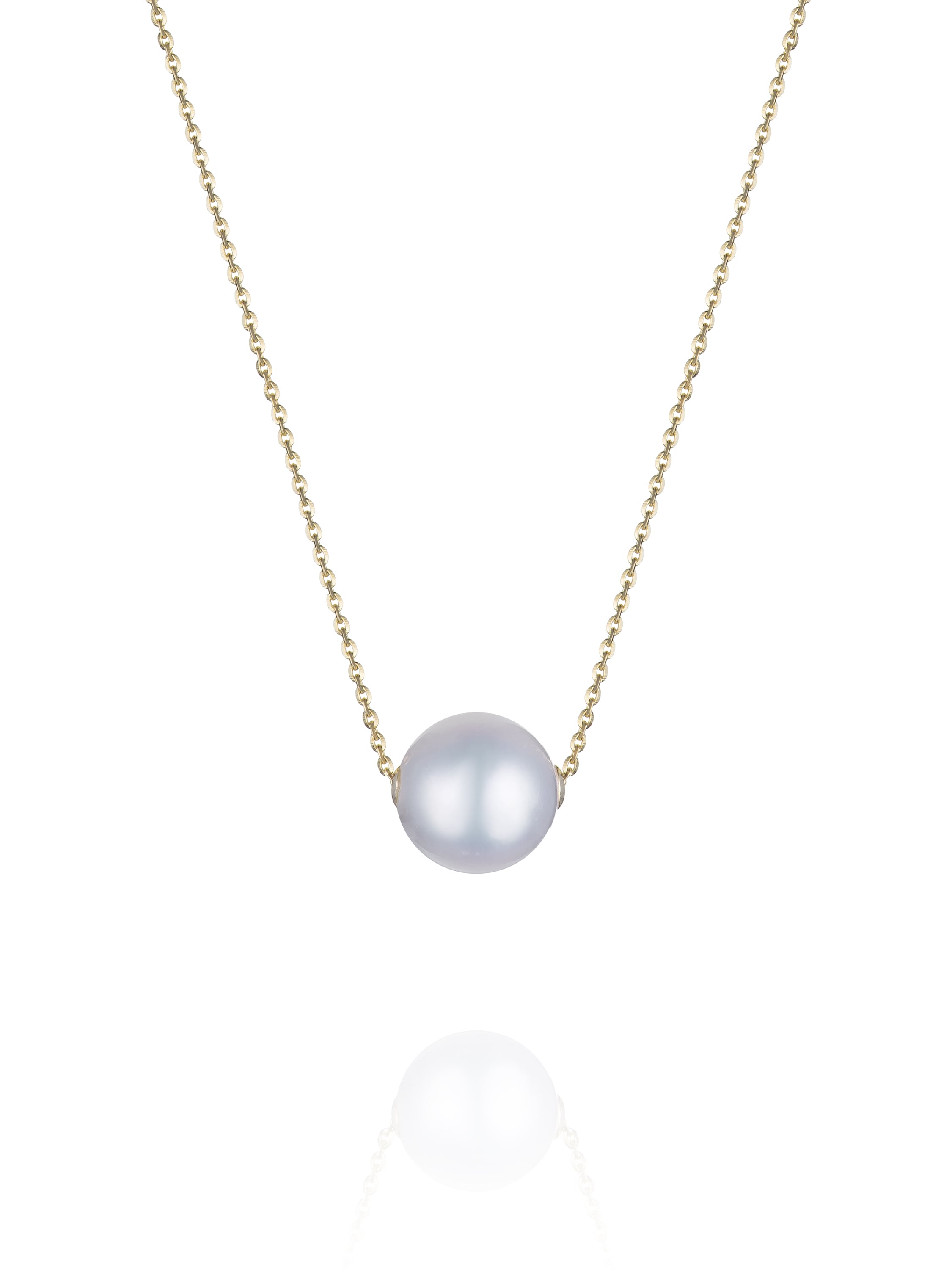 Necklace made of yellow gold with a pendant featuring a white Akoya pearl with a total weight of 0.80 g and a diameter of 9.0 mm.