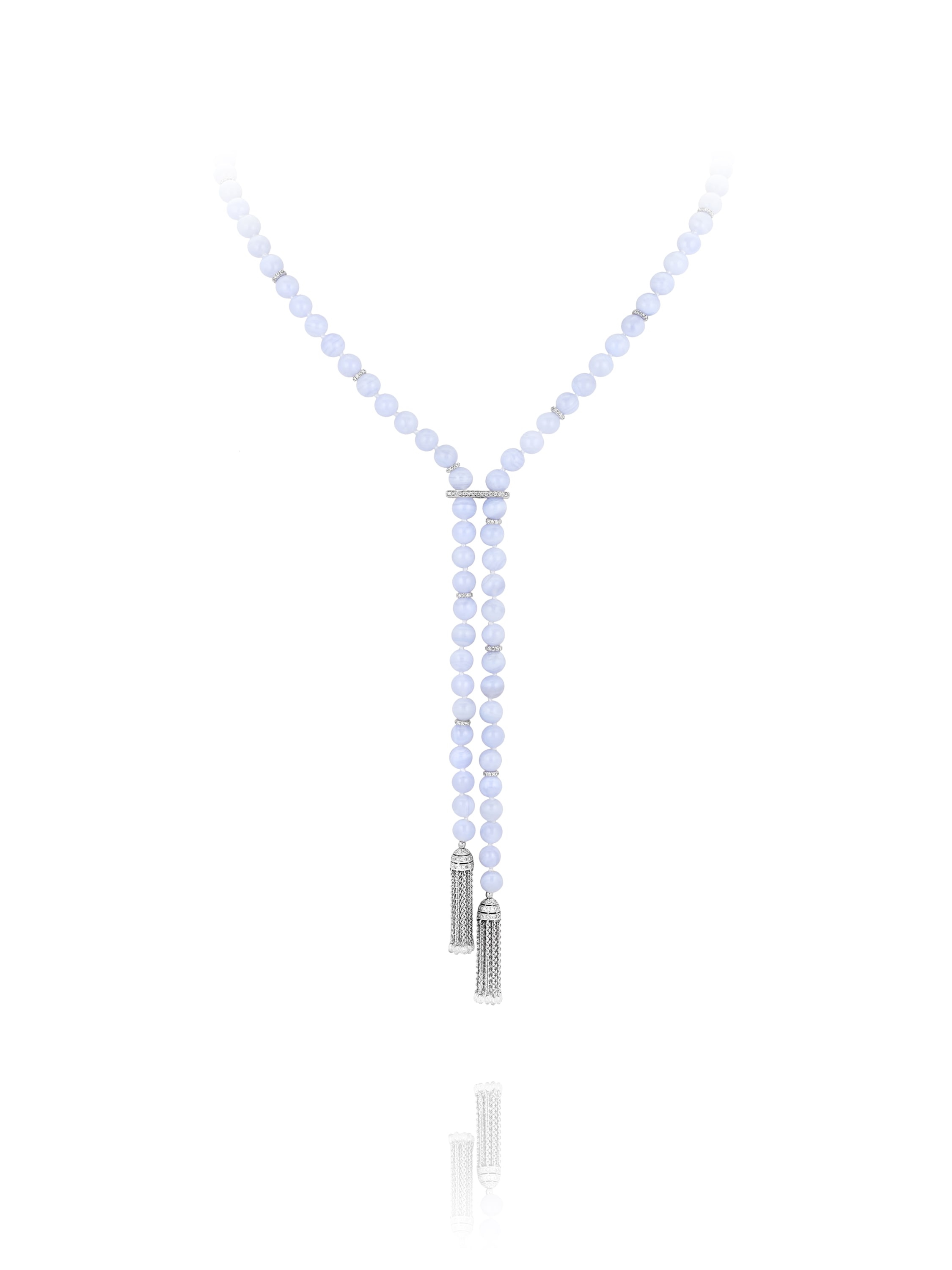 Necklace-belt with 95 chalcedony beads weighing 37.05 g, 30 diamonds weighing 3.30 ct and 350 round-cut diamonds weighing 1.36 ct.