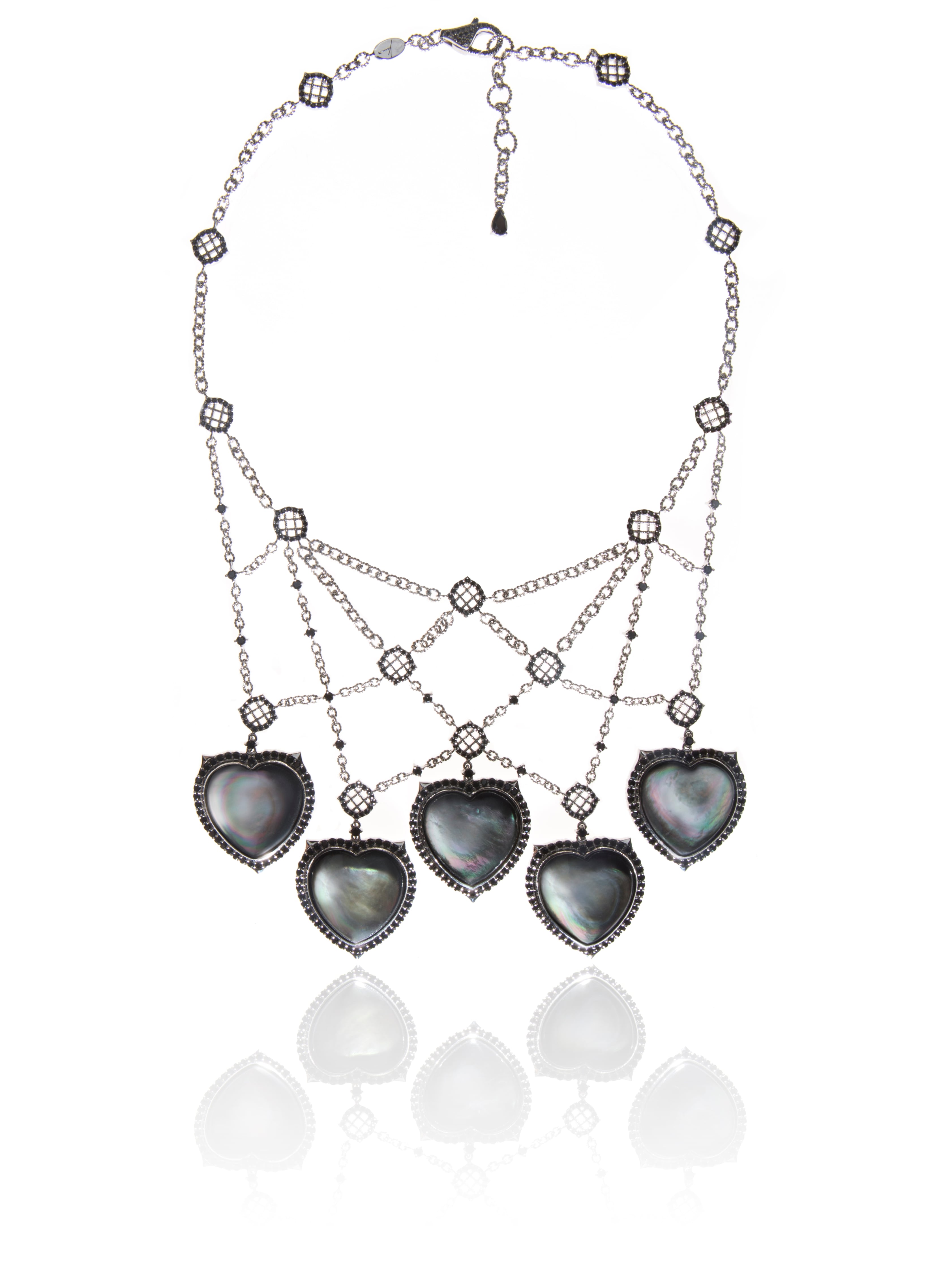 White Gold, Heart-cut Mother-of-pearl, Black Diamonds & Spinel "5 Senses" Necklace