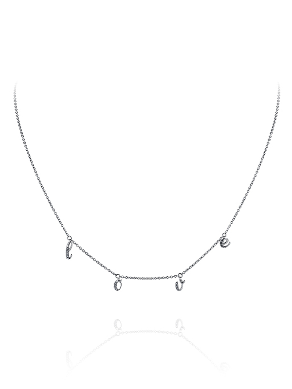 “Love” necklace in blackened gold, set with 13 round black diamonds with a total weight of 0.08 ct.