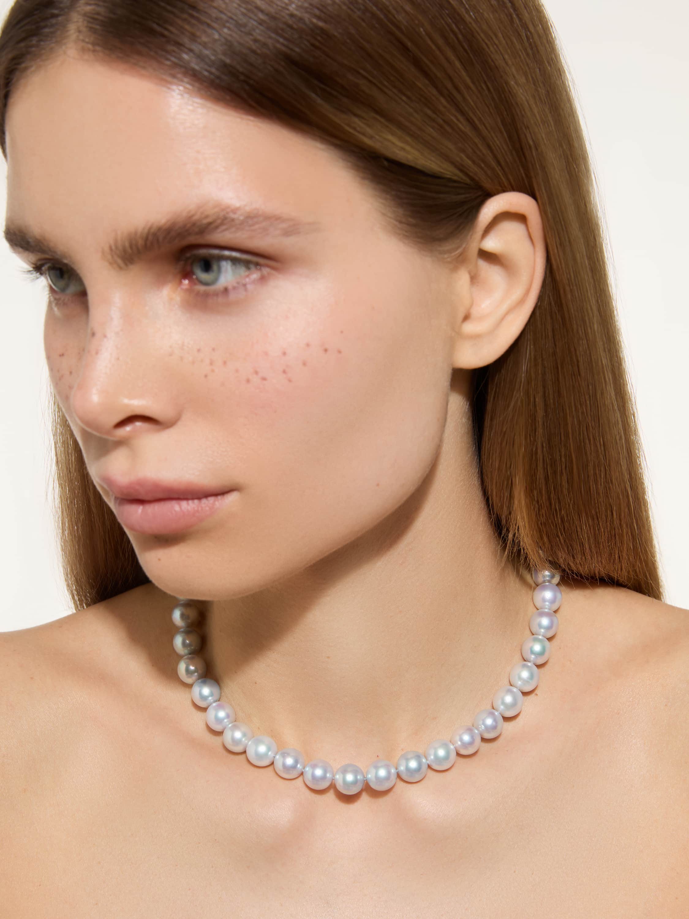 Necklace with blue Akoya pearls with the rarest pink overtone d 10.5–11.0 67.62 g and 152 round diamonds weighing 1.01 ct.